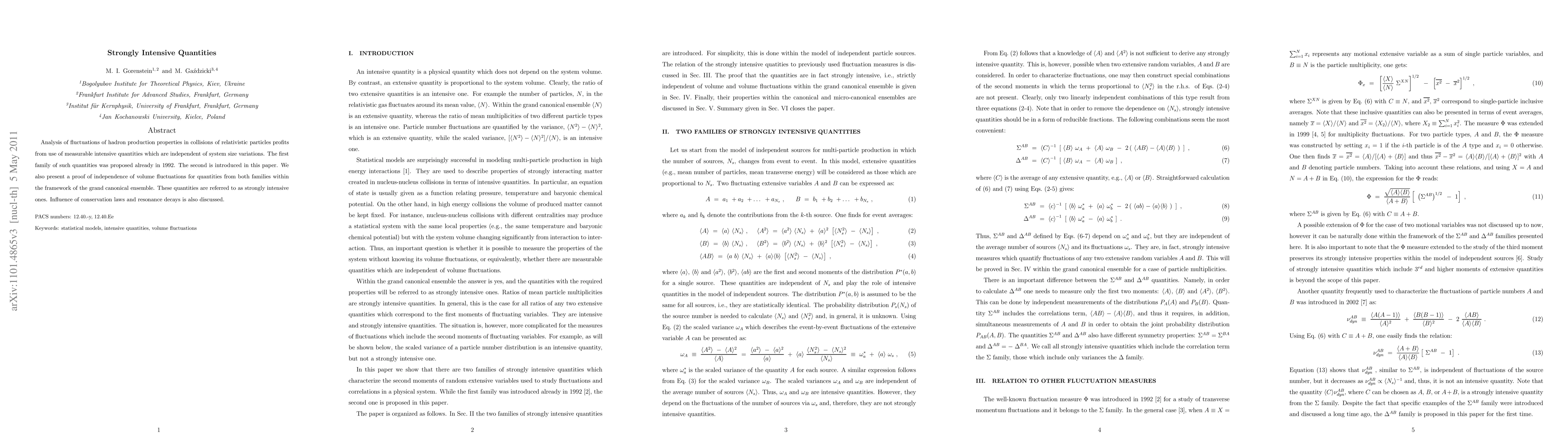 Researchers introduce two new families of 'strongly intensive quantities' that measure hadron production properties in relativistic particle collisions, providing a way to analyze fluctuations independently of system size variations.