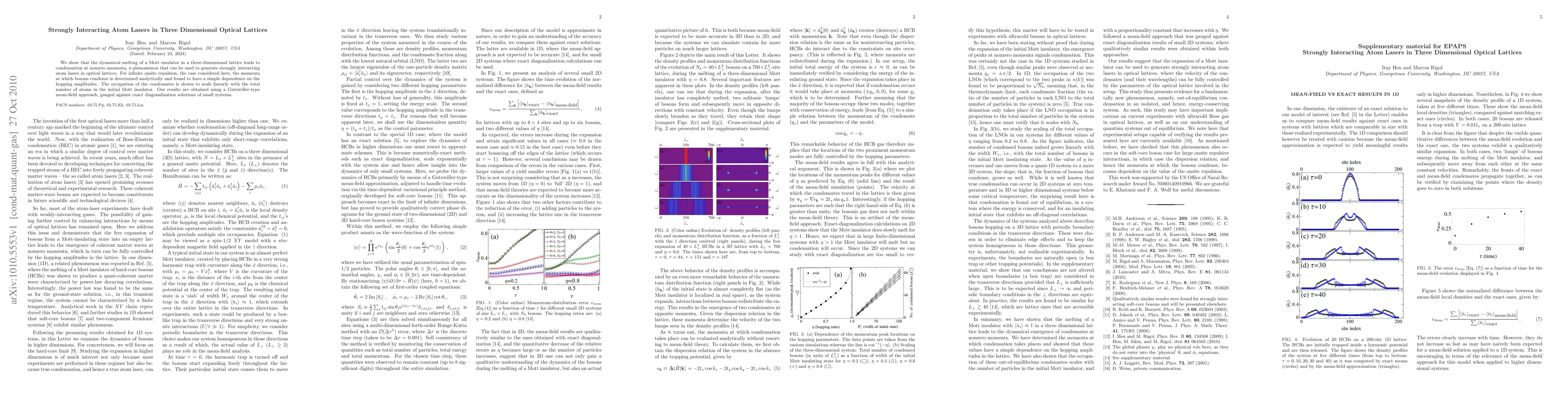 This paper demonstrates the generation of strongly interacting atom lasers via the dynamical melting of a Mott insulator in a three-dimensional optical lattice, revealing condensation at nonzero momenta. The analytical determination of condensation momenta depends on hopping amplitudes, and the condensate occupation scales linearly with the initial number of atoms.