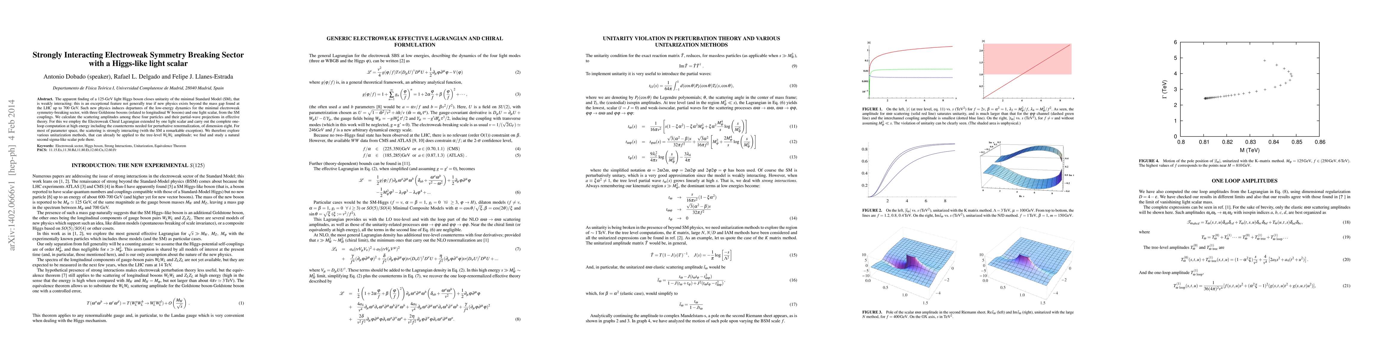 This paper investigates the dynamics of a new physics sector beyond the minimal Standard Model, revealing strongly interacting electroweak symmetry breaking with a Higgs-like scalar. It employs the Electroweak Chiral Lagrangian and one-loop computations to explore unitarization methods, identifying a natural second scalar pole in the $W_L W_L$ amplitude.