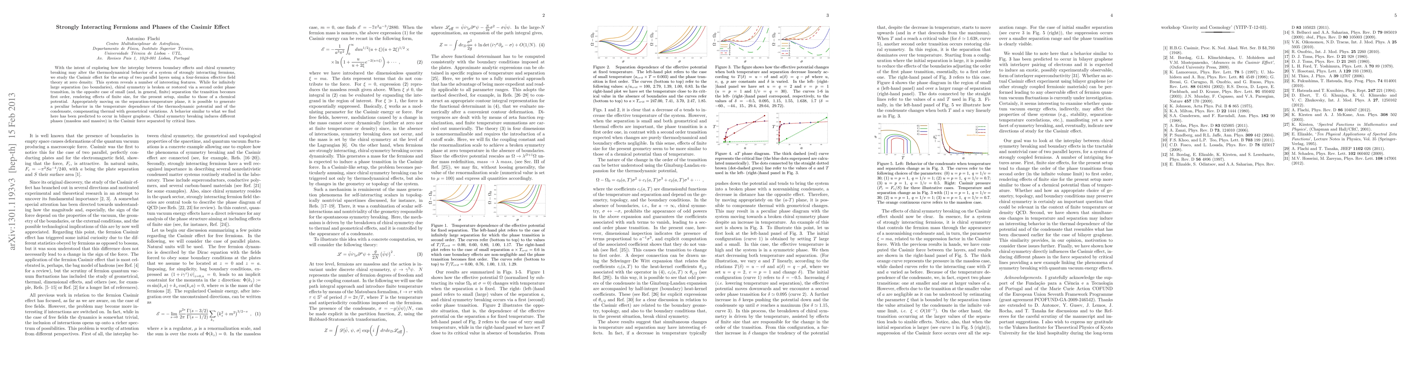 Researchers studied the Casimir effect in a system of strongly interacting fermions with two parallel layers, finding that chiral symmetry breaking leads to first-order phase transitions and unusual temperature-dependent behavior.