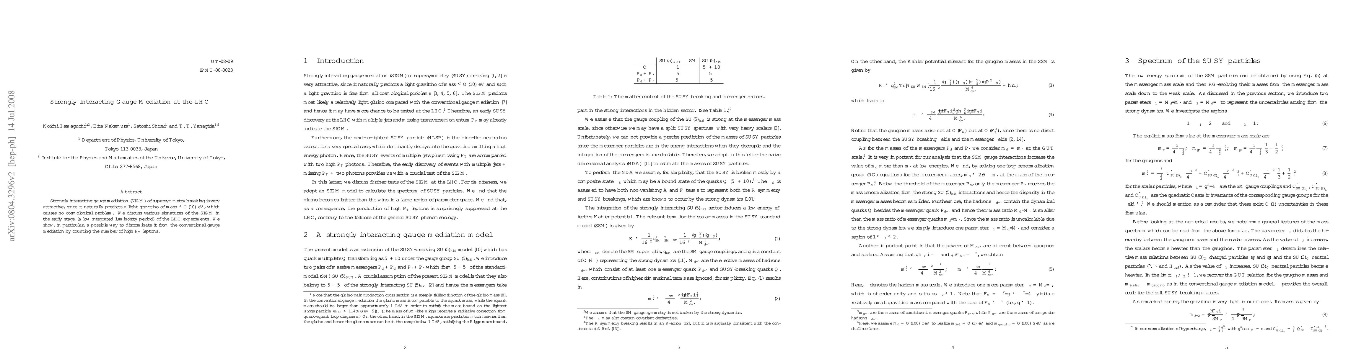 Summary: This paper explores the signatures of strongly interacting gauge mediation (SIGM) at the LHC, highlighting its potential to predict a light gravitino without cosmological issues. It proposes a method to distinguish SIGM from conventional gauge mediation by analyzing the number of high transverse momentum leptons produced.