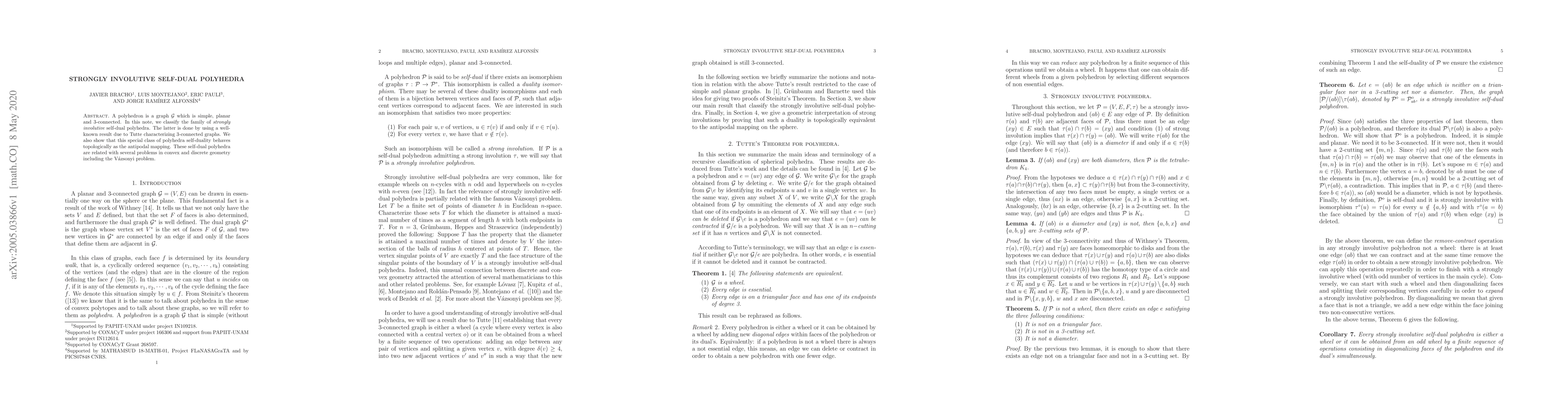 A combination of graph theory, geometry, and combinatorics was used to study strongly involutive self-dual polyhedra.