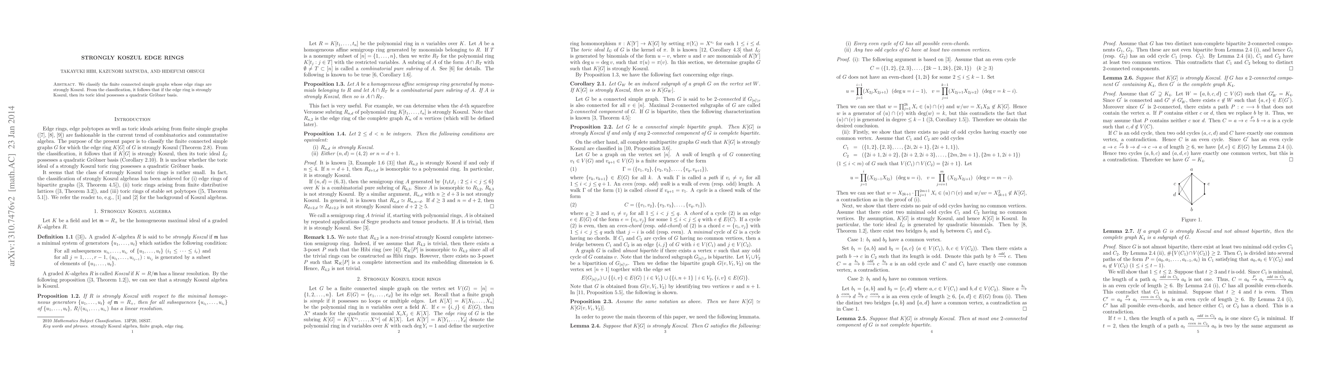 Summary: This paper classifies finite connected simple graphs with edge rings that are strongly Koszul, showing that such edge rings have toric ideals that admit quadratic Gröbner bases.