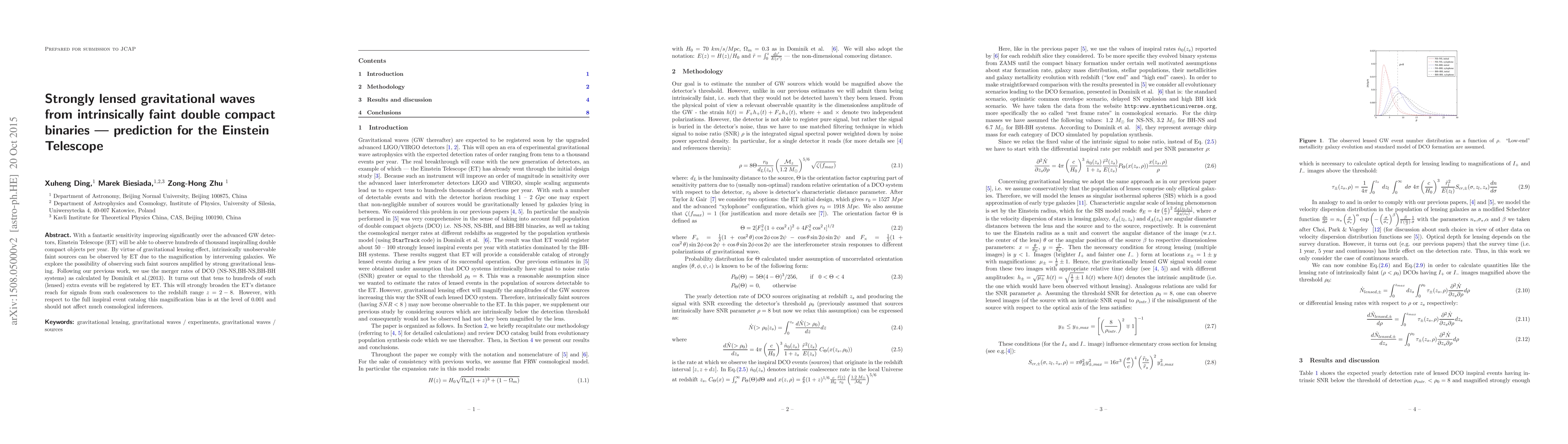 With a fantastic sensitivity improving significantly over the advanced GW detectors, Einstein Telescope (ET) will be able to observe hundreds of thousand inspiralling double compact objects per year. By virtue of gravitational lensing effect, intrinsically unobservable faint sources can be observed by ET due to the magnification by intervening galaxies. We explore the possibility of observing such faint sources amplified by strong gravitational lensing. Following our previous work, we use the merger rates of DCO (NS-NS,BH-NS,BH-BH systems) as calculated by Dominik et al.(2013). It turns out that tens to hundreds of such (lensed) extra events will be registered by ET. This will strongly broaden the ET's distance reach for signals from such coalescences to the redshift range z=2 - 8. However, with respect to the full inspiral event catalog this magnification bias is at the level of 0.001 and should not affect much cosmological inferences.