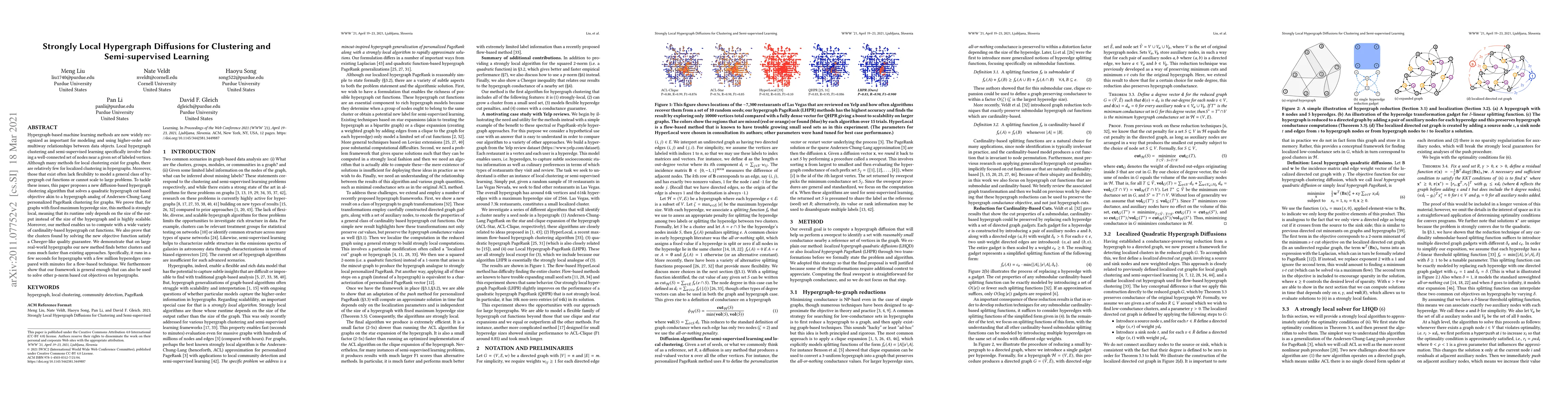 This paper introduces a novel diffusion-based hypergraph clustering algorithm that efficiently solves a quadratic hypergraph cut objective, offering scalability and flexibility for various cut functions. The method is strongly local, running in time dependent on the size of the output rather than the entire hypergraph, and demonstrates superior performance on large real-world datasets compared to existing techniques.