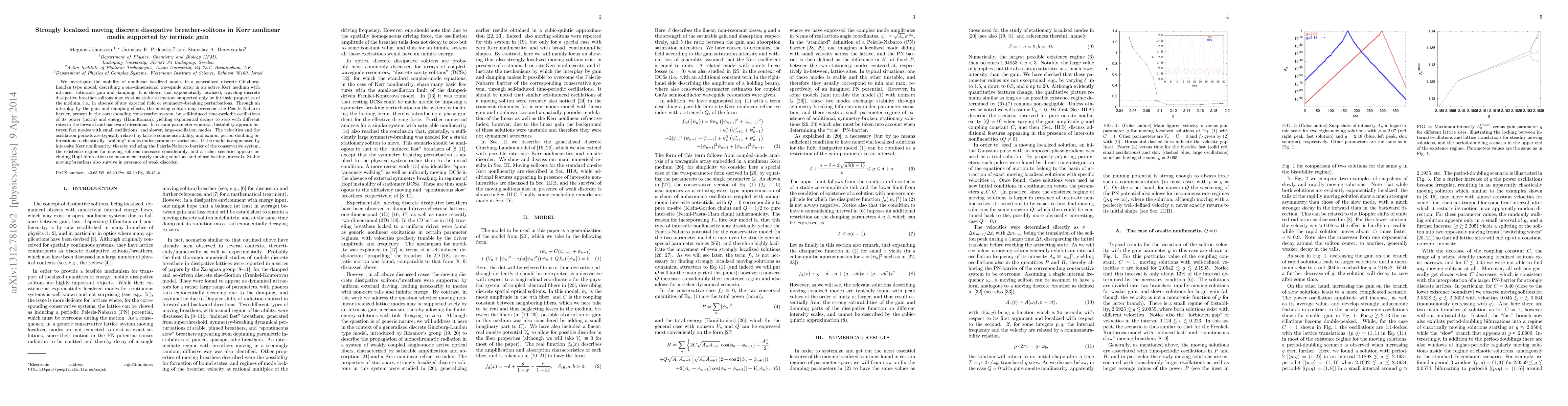 We investigate the mobility of nonlinear localized modes in a generalized discrete Ginzburg-Landau type model, describing a one-dimensional waveguide array in an active Kerr medium with intrinsic, saturable gain and damping. It is shown that exponentially localized, traveling discrete dissipative breather-solitons may exist as stable attractors supported only by intrinsic properties of the medium, i.e., in absence of any external field or symmetry-breaking perturbations. Through an interplay by the gain and damping effects, the moving soliton may overcome the Peierls-Nabarro barrier, present in the corresponding conservative system, by self-induced time-periodic oscillations of its power (norm) and energy (Hamiltonian), yielding exponential decays to zero with different rates in the forward and backward directions. In certain parameter windows, bistability appears between fast modes with small oscillations, and slower, large-oscillation modes. The velocities and the oscillation periods are typically related by lattice commensurability, and exhibit period-doubling bifurcations to chaotically "walking" modes under parameter variations. If the model is augmented by inter-site Kerr nonlinearity, thereby reducing the Peierls-Nabarro barrier of the conservative system, the existence regime for moving solitons increases considerably, and a richer scenario appears including Hopf-bifurcations to incommensurately moving solutions and phase-locking intervals. Stable moving breathers also survive in presence of weak disorder.