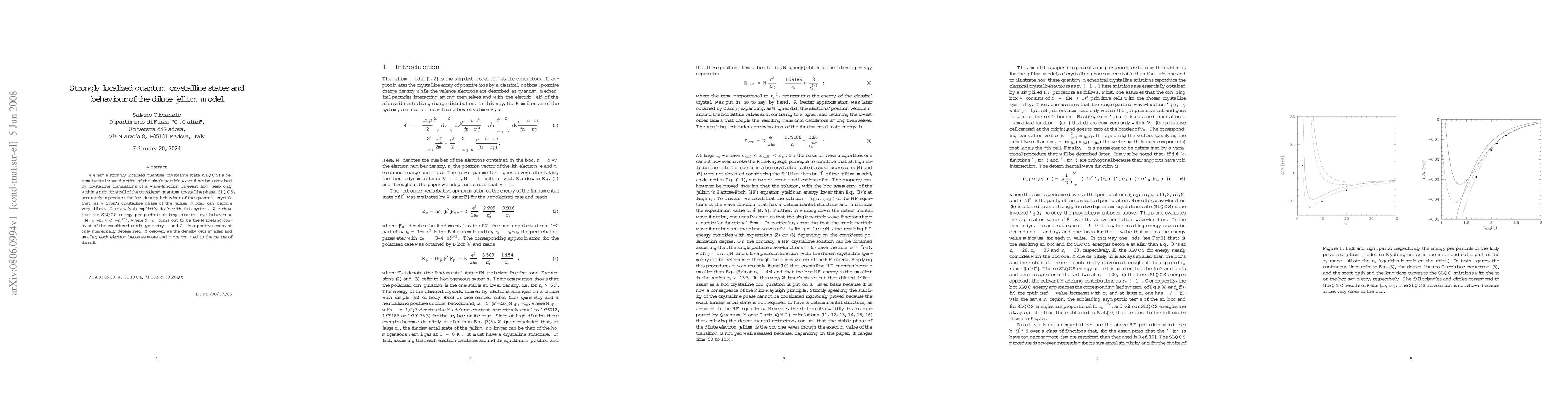 We name strongly localized quantum crystalline state (SLQCS) a determinantal wave-function of the single-particle wave-functions obtained by crystalline translations of a wave-function different from zero only within a primitive cell of the considered quantum crystalline phase. SLQCSs accurately reproduce the low density behaviour of the quantum crystals that, as Wigner's crystalline phase of the jellium model, can become very dilute. Our analysis explicitly deals with this system. We show that the SLQCS energy per particle at large dilution ($r_s$) behaves as $-M_{dl,\sigma}/r_s+C_{\sigma}/{r_s}^{3/2}$, where $M_{dl,\sigma}$ turns out to be the Madelung constant of the considered cubic symmetry $\sigma$ and $C_{\sigma}$ is a positive constant only numerically determined. Moreover, as the density gets smaller and smaller, each electron becomes more and more confined to the centre of its cell.