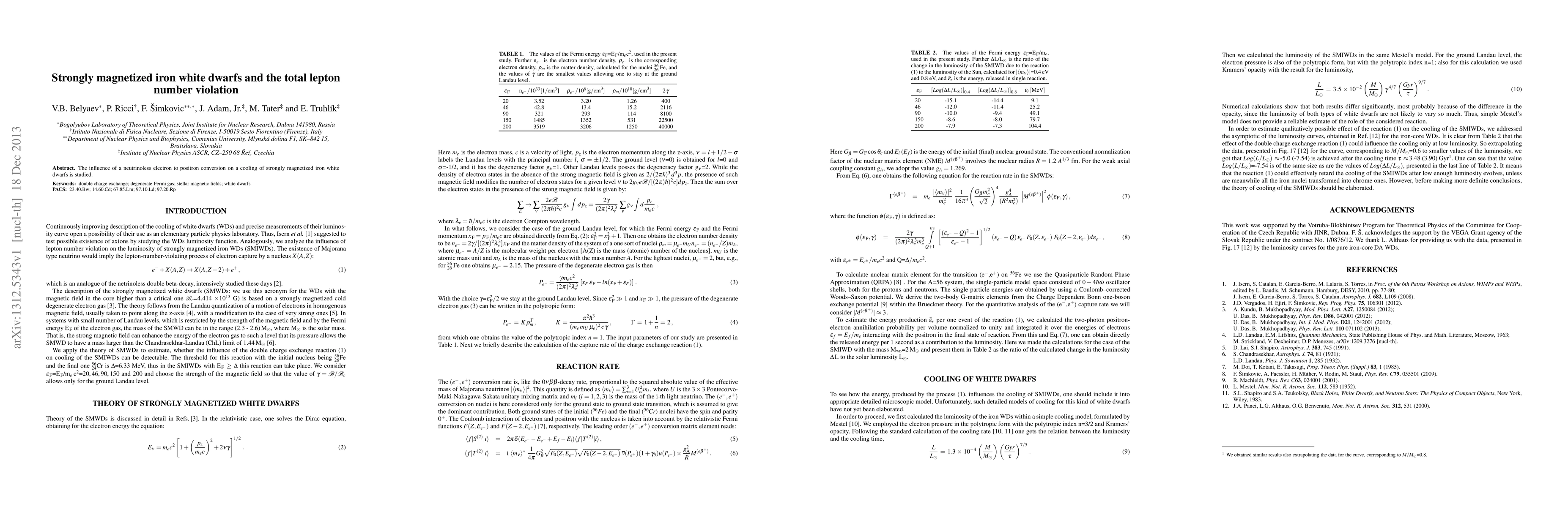 The influence of a neutrinoless electron to positron conversion on a cooling of strongly magnetized iron white dwarfs is studied.