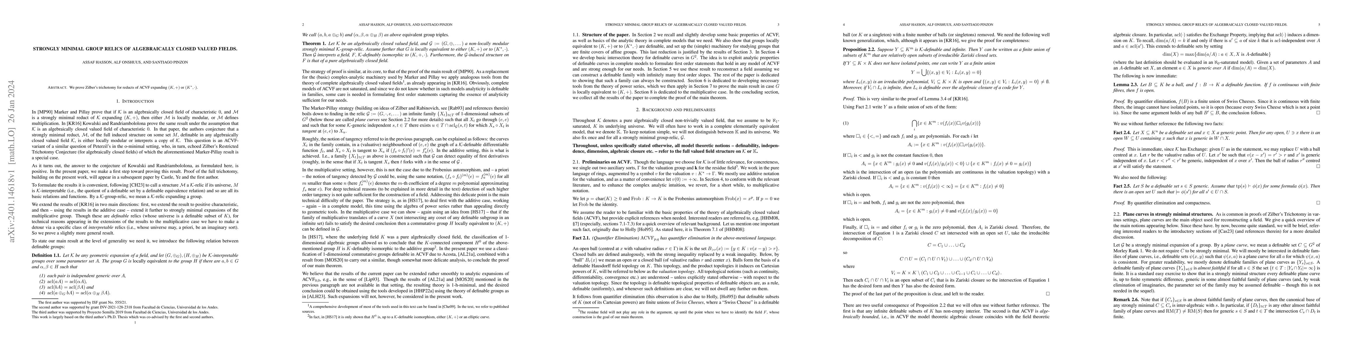 Summary: This paper proves Zilber's trichotomy for the group relics of algebraically closed valued fields, specifically for reducts expanding either the additive or multiplicative group of the field. The result establishes a classification of these group structures.