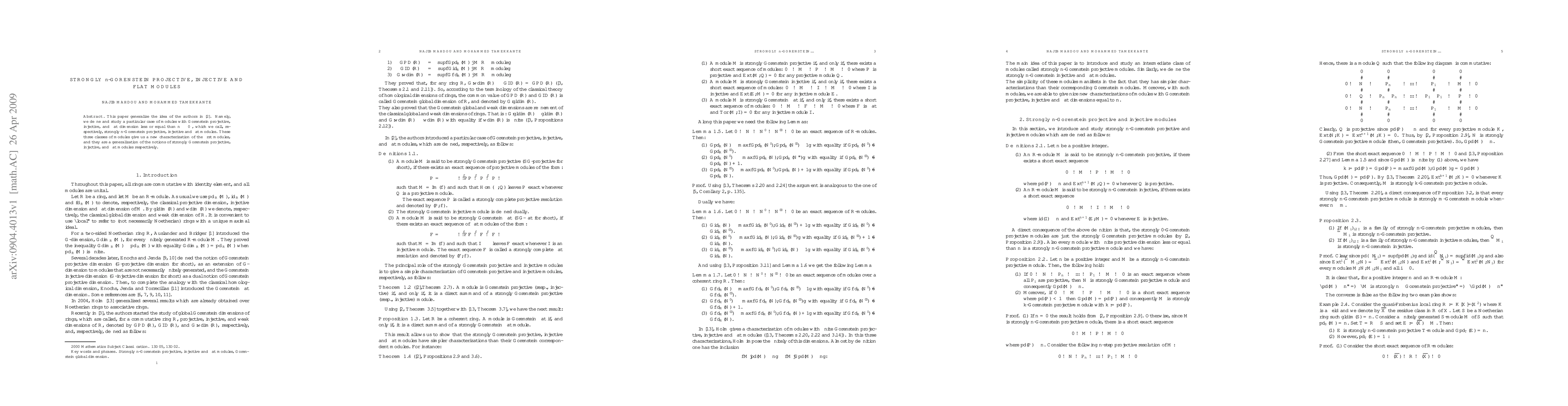 This paper introduces strongly $n$-Gorenstein projective, injective, and flat modules, a generalization of strongly Gorenstein modules where the dimensions are constrained to be less than or equal to $n$. These modules provide a new characterization and extend existing notions in homological algebra.