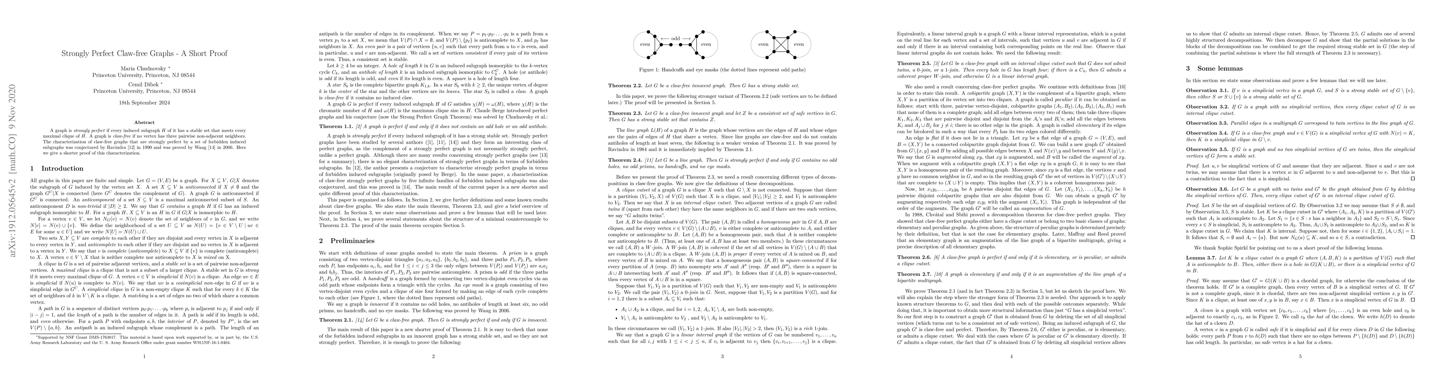 While the core result was previously proven, the novelty lies in the simplicity and clarity of the new proof, offering a more elegant approach to understanding the structural properties of these graphs.