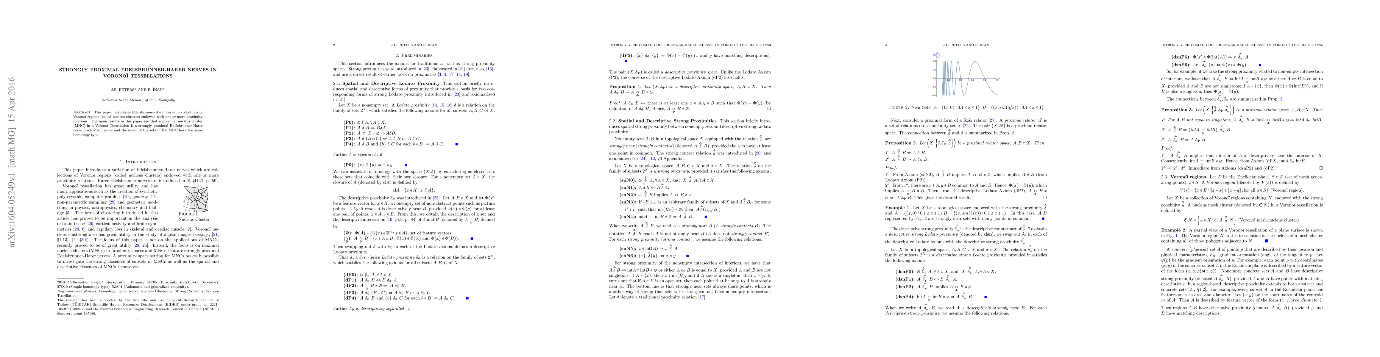 This paper introduces Edelsbrunner-Harer nerve in collections of Voronoi regions (called nucleus clusters) endowed with one or more proximity relations. The main results in this paper are that a maximal nucleus cluster (MNC) in a Voronoi Tessellation is a strongly proximal Edelsbrunner-Harer nerve, each MNC nerve and the union of the sets in the MNC have the same homotopy type.