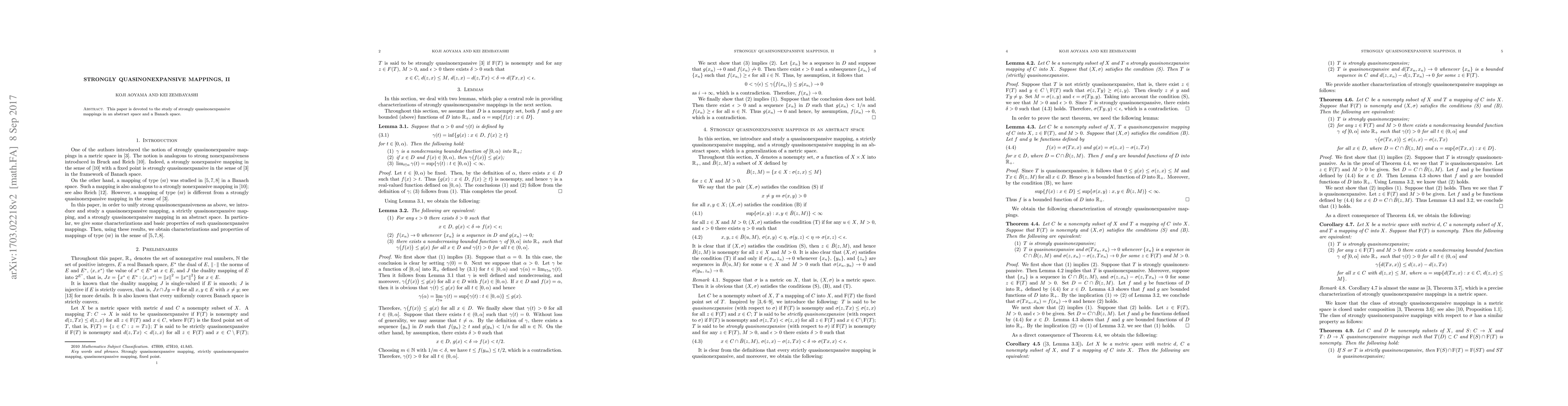 This paper is devoted to the study of strongly quasinonexpansive mappings in an abstract space and a Banach space.