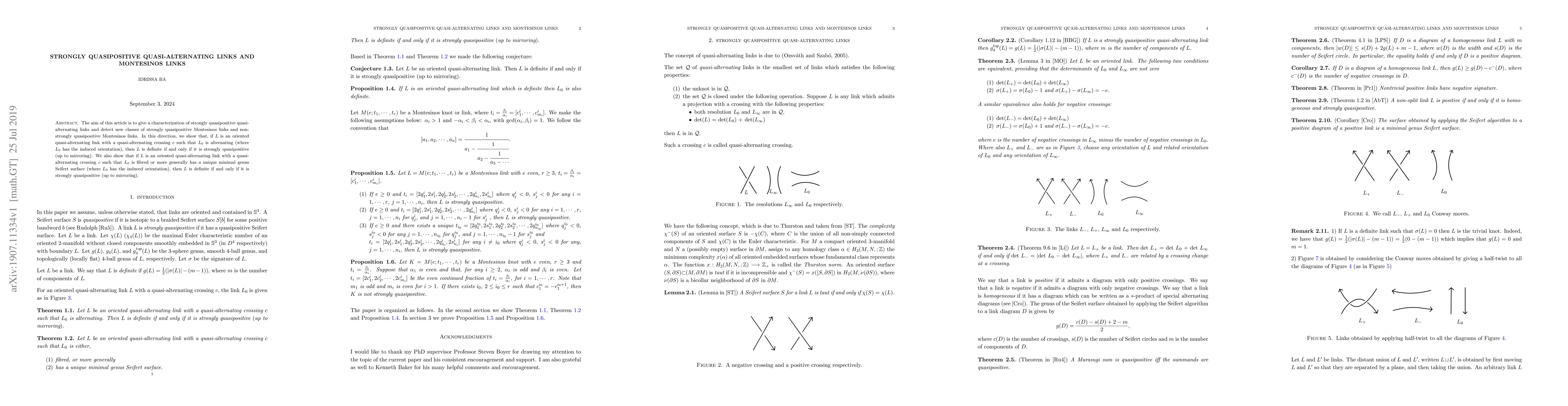 This paper characterizes strongly quasipositive quasi-alternating links and identifies new classes of strongly quasipositive and non-strongly quasipositive Montesinos links. It proves that a quasi-alternating link is definite if and only if it is strongly quasipositive, under certain conditions on its crossings and Seifert surfaces.