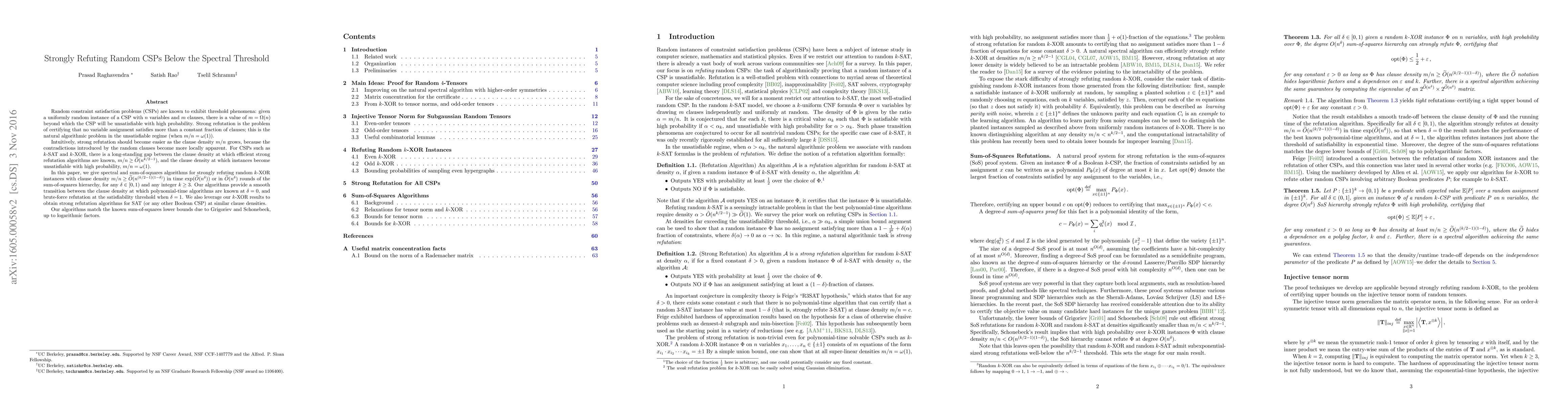This paper presents spectral and sum-of-squares algorithms for strongly refuting random $k$-XOR instances below the spectral threshold, achieving a smooth transition between known polynomial-time algorithms and brute-force refutation. The results extend to Boolean CSPs and certify upper bounds on the injective tensor norm of random tensors.