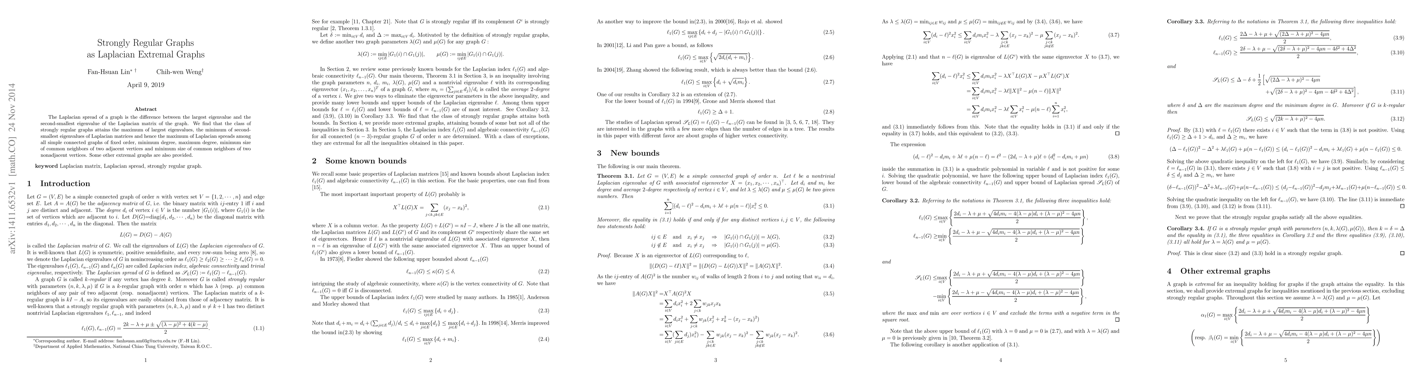 The Laplacian spread of a graph is the difference between the largest eigenvalue and the second-smallest eigenvalue of the Laplacian matrix of the graph. We find that the class of strongly regular graphs attains the maximum of largest eigenvalues, the minimum of second-smallest eigenvalues of Laplacian matrices and hence the maximum of Laplacian spreads among all simple connected graphs of fixed order, minimum degree, maximum degree, minimum size of common neighbors of two adjacent vertices and minimum size of common neighbors of two nonadjacent vertices. Some other extremal graphs are also provided.