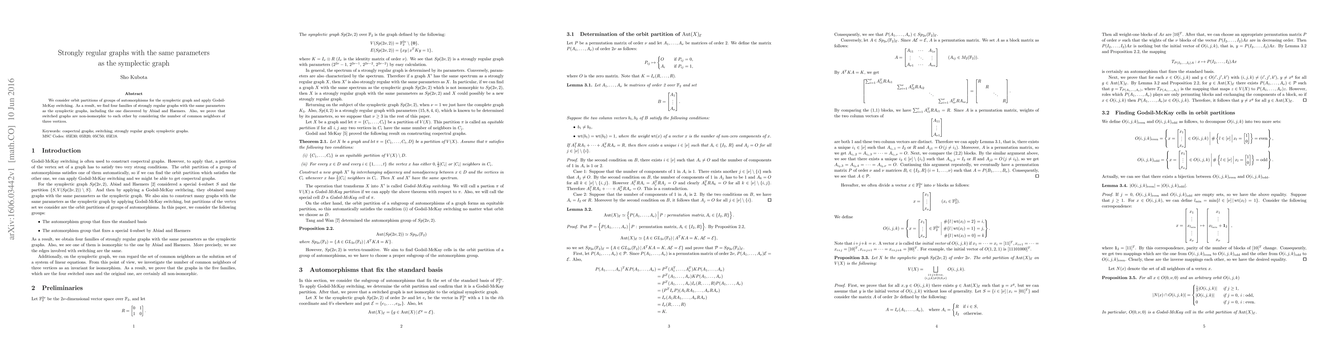 Researchers discovered four new families of strongly regular graphs with the same parameters as the symplectic graph through a method called Godsil-McKay switching, expanding on earlier findings by Abiad and Haemers.