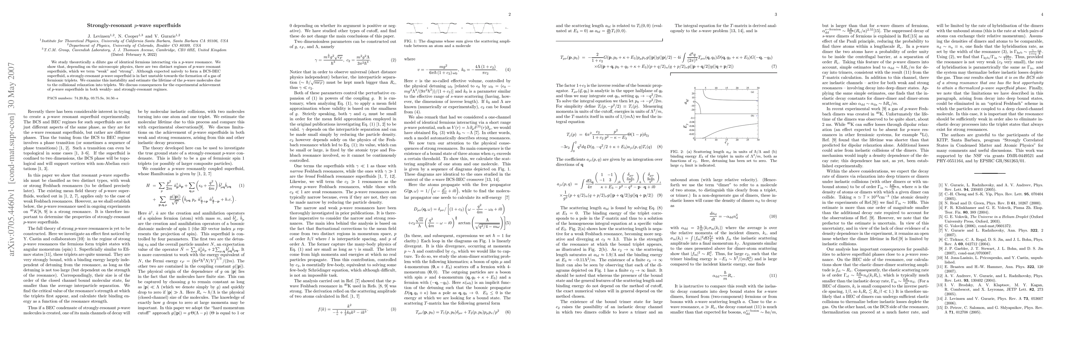 This paper theoretically explores a dilute gas of fermions interacting via a p-wave resonance, revealing two distinct superfluid regimes termed "weak" and "strong." It finds that strongly-resonant p-wave superfluids are unstable, leading to the formation of a gas of fermionic triplets, and discusses the implications for experimental realization of p-wave superfluids.