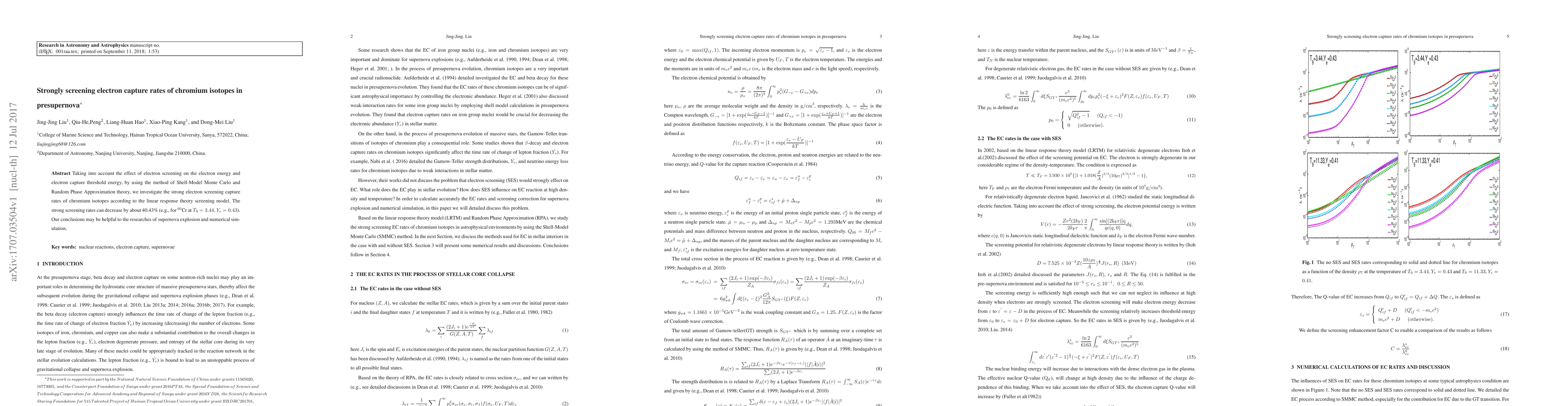 This study investigates the electron capture rates of chromium isotopes under strong electron screening using Shell-Model Monte Carlo and Random Phase Approximation theory. The findings show a significant decrease of about 40.43% in capture rates, which could enhance understanding of supernova explosion mechanisms and simulations.