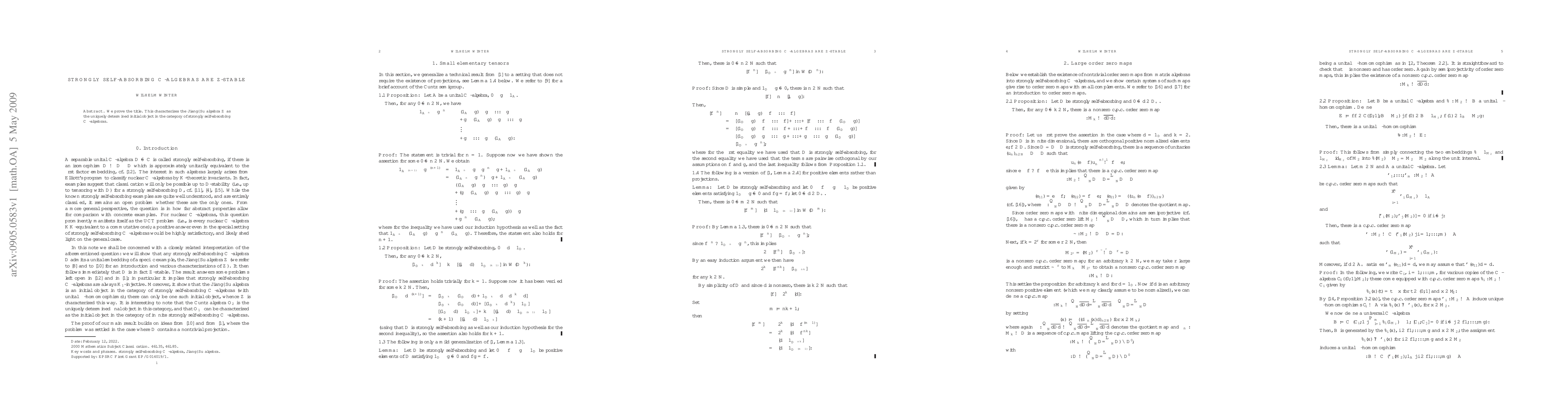 The paper establishes a new characterization of the Jiang-Su algebra Z as the initial object in the category of strongly self-absorbing C*-algebras, using techniques from order zero maps and tensorial absorption.