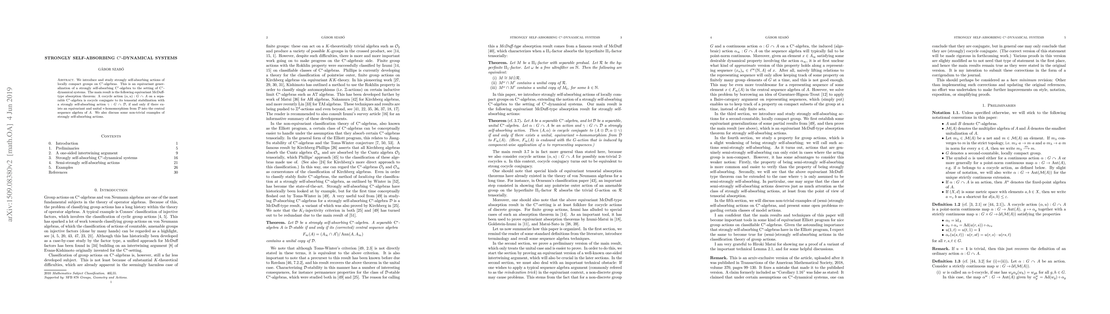 This research paper introduces a new concept called strongly self-absorbing C*-dynamical systems, which generalize the idea of strongly self-absorbing C*-algebras to C*-dynamical systems, and establishes an equivariant absorption theorem for cocycle actions.