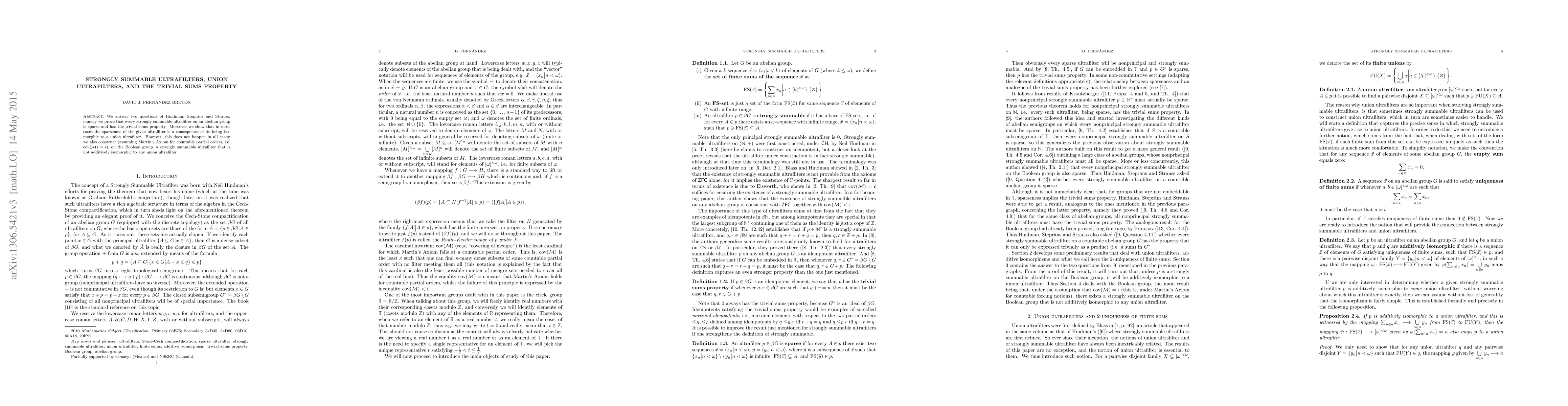 This paper proves that every strongly summable ultrafilter on an abelian group is sparse and possesses the trivial sums property. It also demonstrates that the sparseness often arises from the ultrafilter being isomorphic to a union ultrafilter, though it constructs a counterexample under Martin's Axiom.