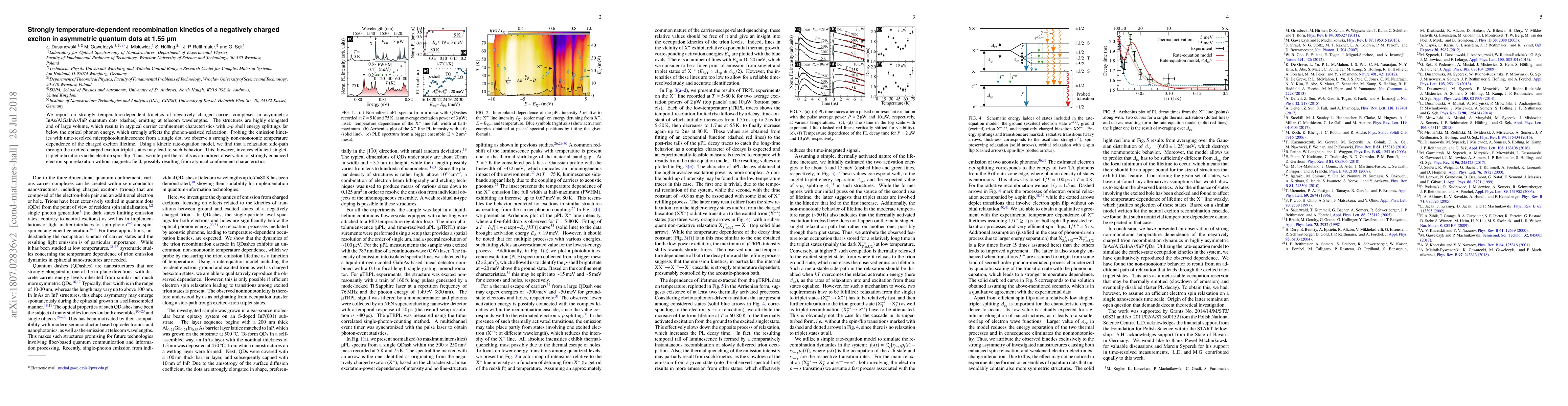 This paper investigates the temperature-dependent recombination kinetics of negatively charged excitons in large, asymmetric quantum dots emitting at 1.55 μm. The study reveals a non-monotonic temperature dependence of the exciton lifetime, suggesting enhanced electron spin relaxation due to unique confinement characteristics.