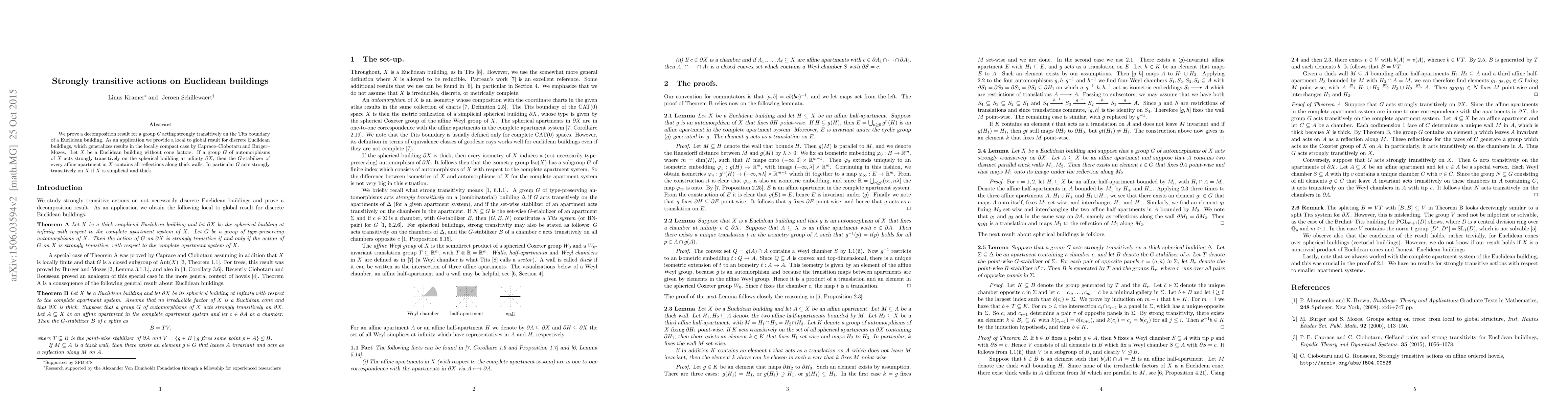 We prove a decomposition result for a group $G$ acting strongly transitively on the Tits boundary of a Euclidean building. As an application we provide a local to global result for discrete Euclidean buildings, which generalizes results in the locally compact case by Caprace--Ciobotaru and Burger--Mozes. Let $X$ be a Euclidean building without cone factors. If a group $G$ of automorphisms of $X$ acts strongly transitively on the spherical building at infinity $\partial X$, then the $G$-stabilizer of every affine apartment in $X$ contains all reflections along thick walls. In particular $G$ acts strongly transitively on $X$ if $X$ is simplicial and thick.