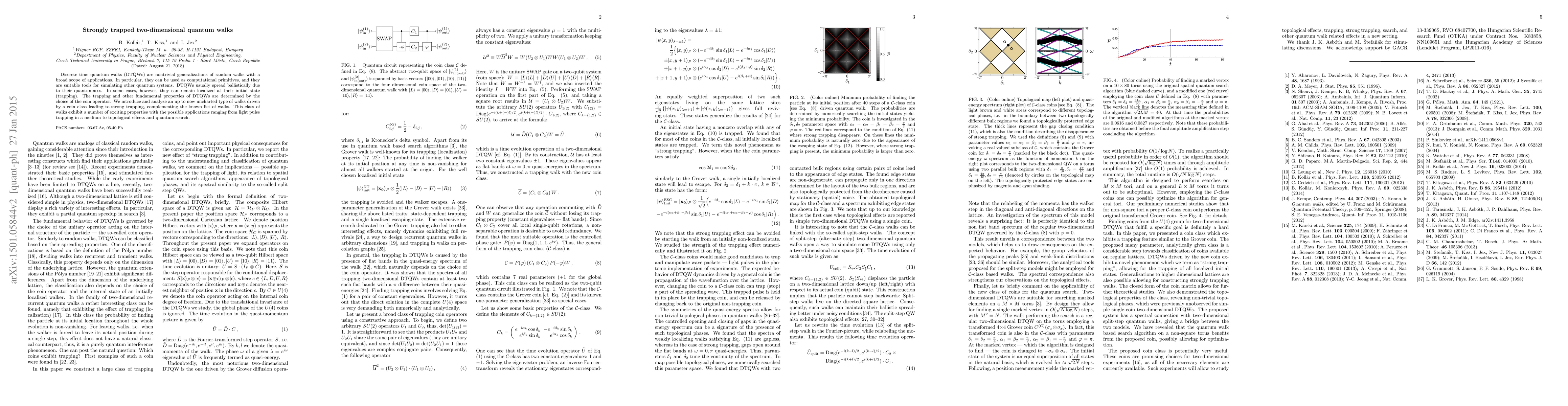 This paper introduces a novel class of strongly trapped two-dimensional quantum walks, driven by a specific coin operator, which remain localized at their initial state. These walks exhibit unique properties with potential applications in light pulse trapping, topological effects, and quantum search.