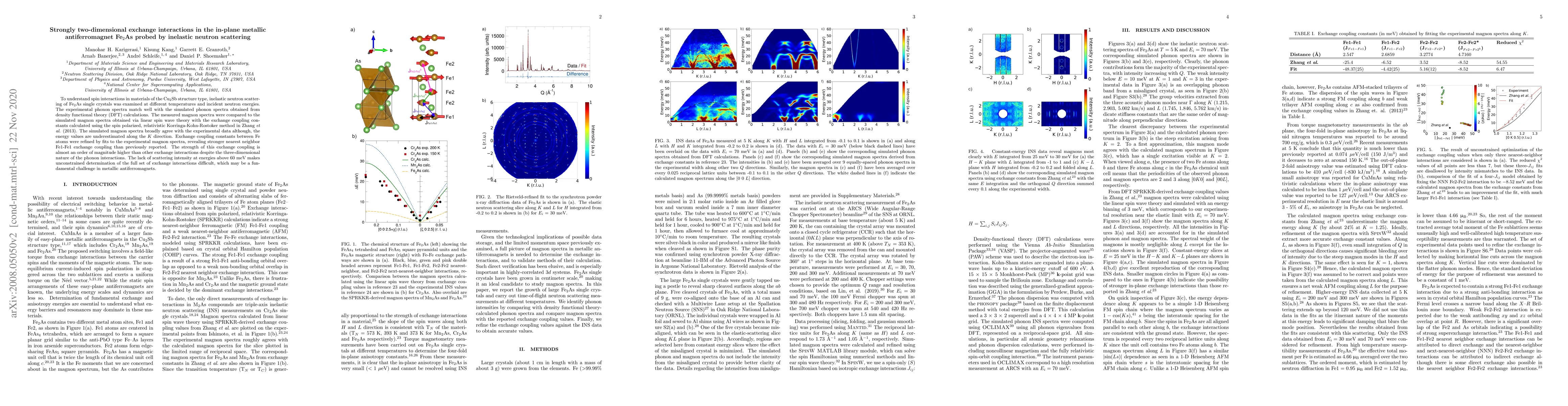 This study uses inelastic neutron scattering to investigate the spin interactions in Fe$_2$As, revealing strongly two-dimensional exchange coupling between Fe atoms, with the nearest neighbor Fe1-Fe1 interaction being significantly stronger than others. Despite the three-dimensional phonon interactions, the refined exchange coupling constants highlight a fundamental challenge in determining the full set of interactions in metallic antiferromagnets.