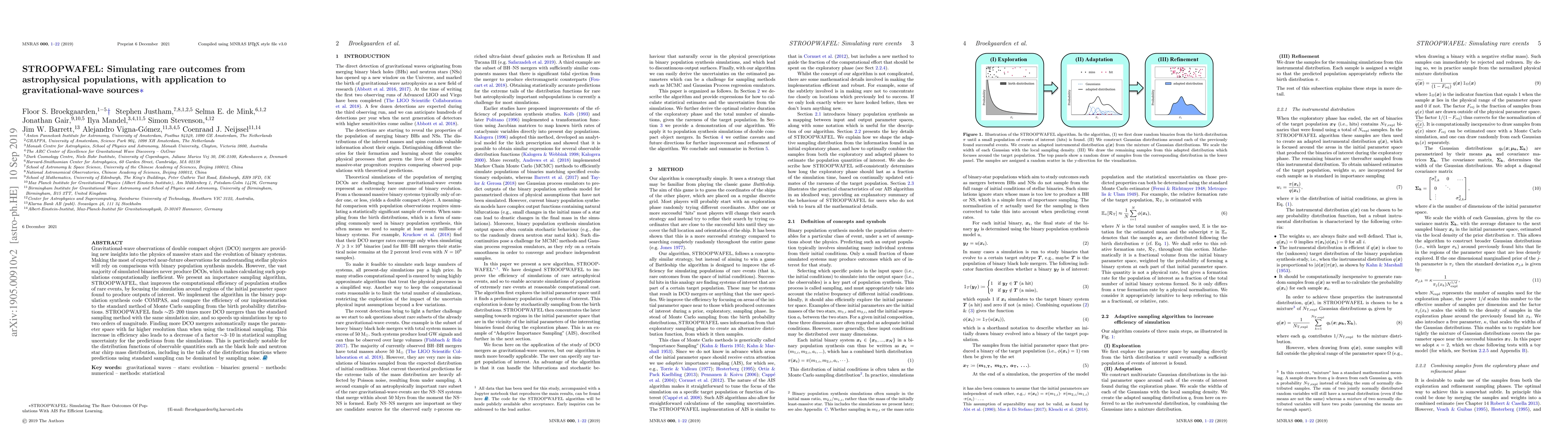 The paper introduces STROOPWAFEL, an importance sampling algorithm that significantly enhances the computational efficiency of simulating rare astrophysical events like double compact object mergers. By focusing on initial parameter spaces producing desired outcomes, STROOPWAFEL increases DCO merger detection by 25-200 times compared to traditional Monte Carlo sampling, reducing simulation time by up to two orders of magnitude. This boost in efficiency also lowers statistical uncertainty in predictions, particularly for the distribution tails of observable quantities, making it a valuable tool for gravitational-wave source studies.
