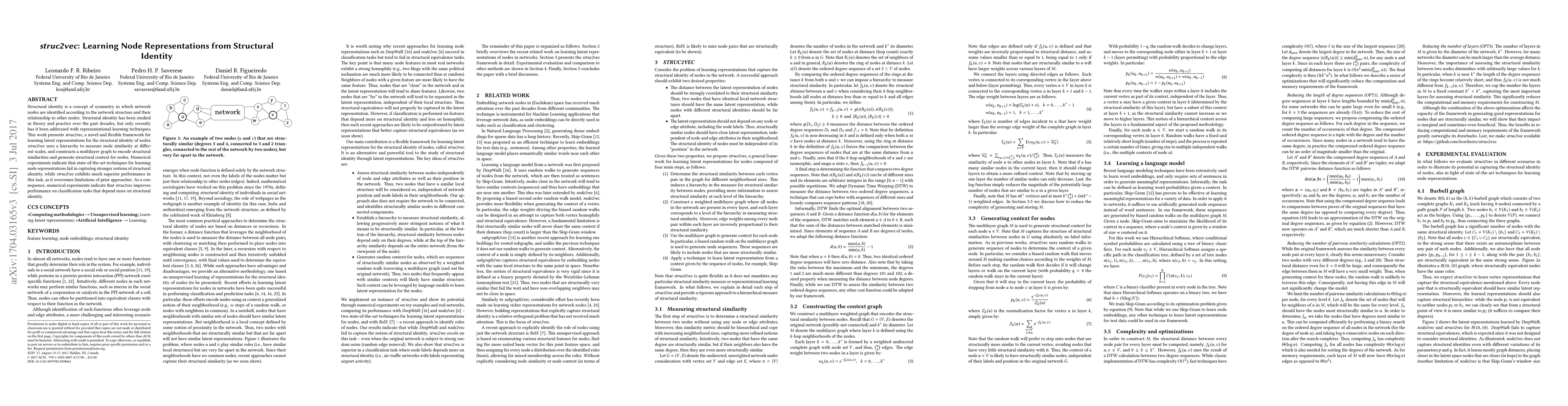 Struc2vec introduces a framework for learning node representations based on structural identity, using a hierarchy to measure node similarity and a multilayer graph to encode structural context. It outperforms existing techniques in capturing structural identity, leading to better performance in classification tasks reliant on structural features.