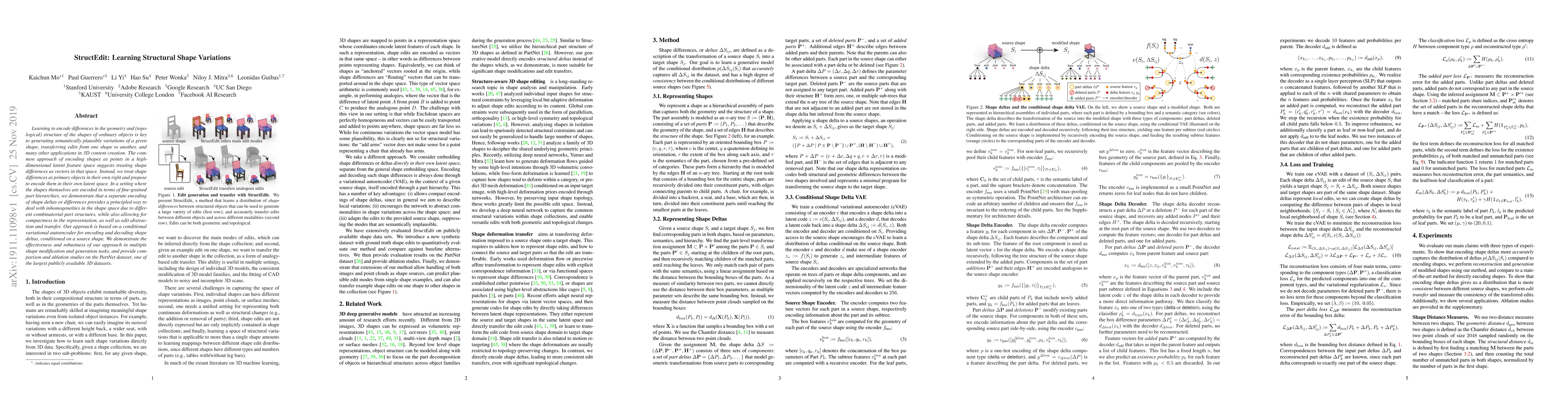 Learning to encode differences in the geometry and (topological) structure of the shapes of ordinary objects is key to generating semantically plausible variations of a given shape, transferring edits from one shape to another, and many other applications in 3D content creation. The common approach of encoding shapes as points in a high-dimensional latent feature space suggests treating shape differences as vectors in that space. Instead, we treat shape differences as primary objects in their own right and propose to encode them in their own latent space. In a setting where the shapes themselves are encoded in terms of fine-grained part hierarchies, we demonstrate that a separate encoding of shape deltas or differences provides a principled way to deal with inhomogeneities in the shape space due to different combinatorial part structures, while also allowing for compactness in the representation, as well as edit abstraction and transfer. Our approach is based on a conditional variational autoencoder for encoding and decoding shape deltas, conditioned on a source shape. We demonstrate the effectiveness and robustness of our approach in multiple shape modification and generation tasks, and provide comparison and ablation studies on the PartNet dataset, one of the largest publicly available 3D datasets.