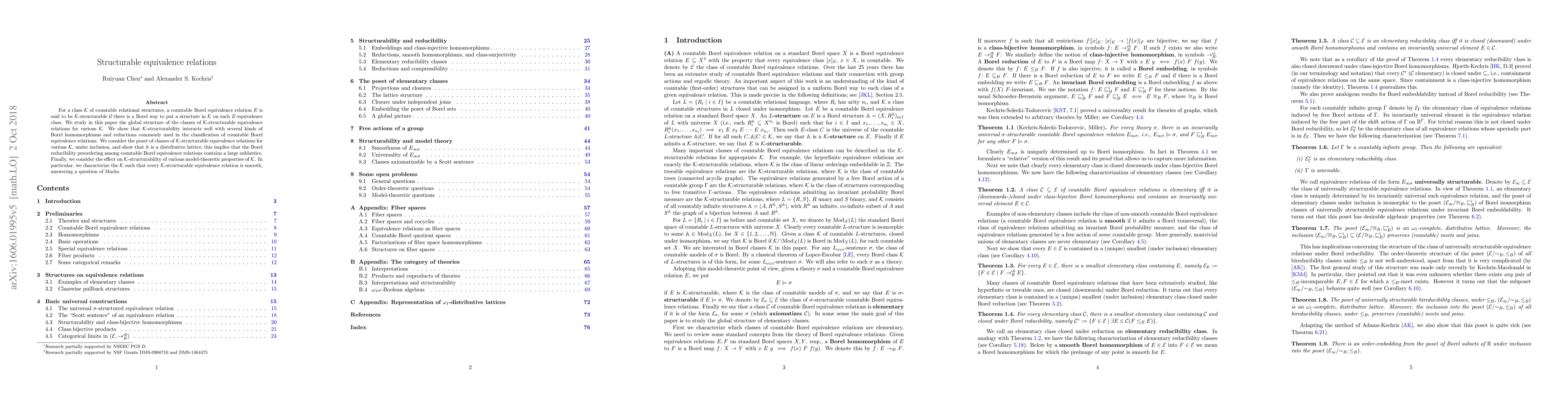 This paper investigates the global structure of $\mathcal K$-structurable equivalence relations for various classes $\mathcal K$ of countable relational structures. It demonstrates that $\mathcal K$-structurability interacts well with common Borel homomorphisms and reductions, and shows the poset of such equivalence relations forms a distributive lattice, revealing a significant sublattice in Borel reducibility.