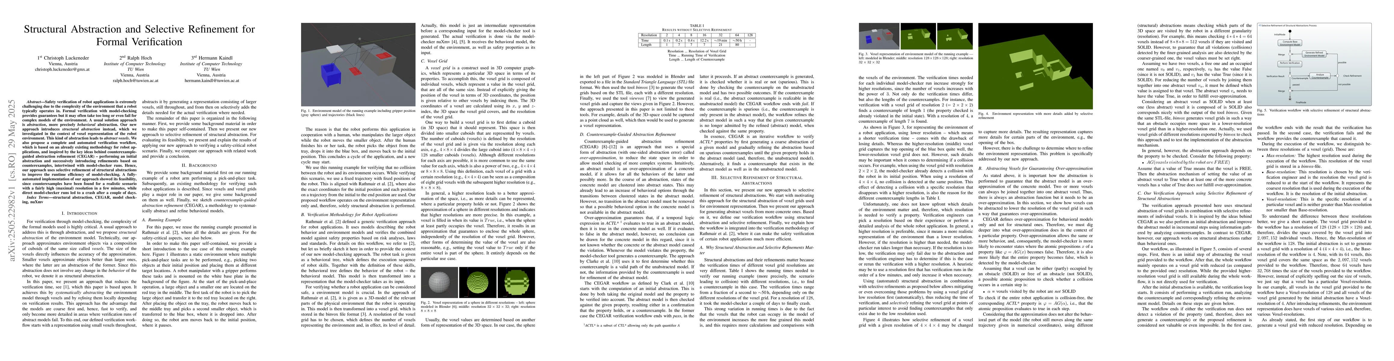 Unlike existing behavioral abstraction methods, this work focuses on structural abstraction of voxel grids, combined with selective refinement, to address the challenges of high-resolution models in formal verification of robotic systems.