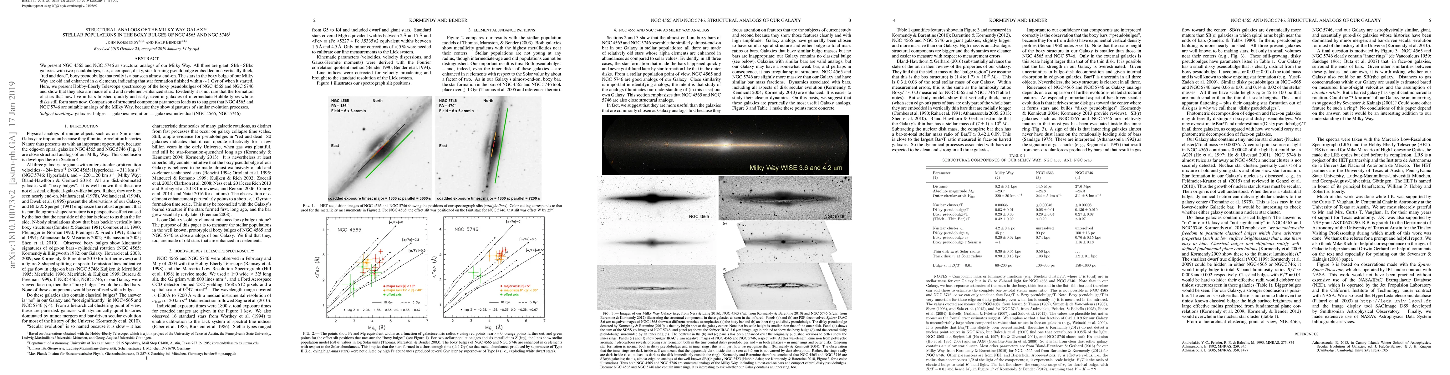 We present NGC 4565 and NGC 5746 as structural analogs of our Milky Way. All three are giant, SBb - SBbc galaxies with two pseudobulges, i. e., a compact, disky, star-forming pseudobulge embedded in a vertically thick, "red and dead", boxy pseudobulge that really is a bar seen almost end-on. The stars in the boxy bulge of our Milky Way are old and enhanced in alpha elements, indicating that star formation finished within ~ 1 Gyr of when it started. Here, we present Hobby-Eberly Telescope spectroscopy of the boxy pseudobulges of NGC 4565 and NGC 5746 and show that they also are made of old and alpha-element-enhanced stars. Evidently it is not rare that the formation of stars that now live in bars finished quickly and early, even in galaxies of intermediate Hubble types whose disks still form stars now. Comparison of structural component parameters leads us to suggest that NGC 4565 and NGC 5746 are suitable analogs of the Milky Way, because they show signatures of similar evolution processes.