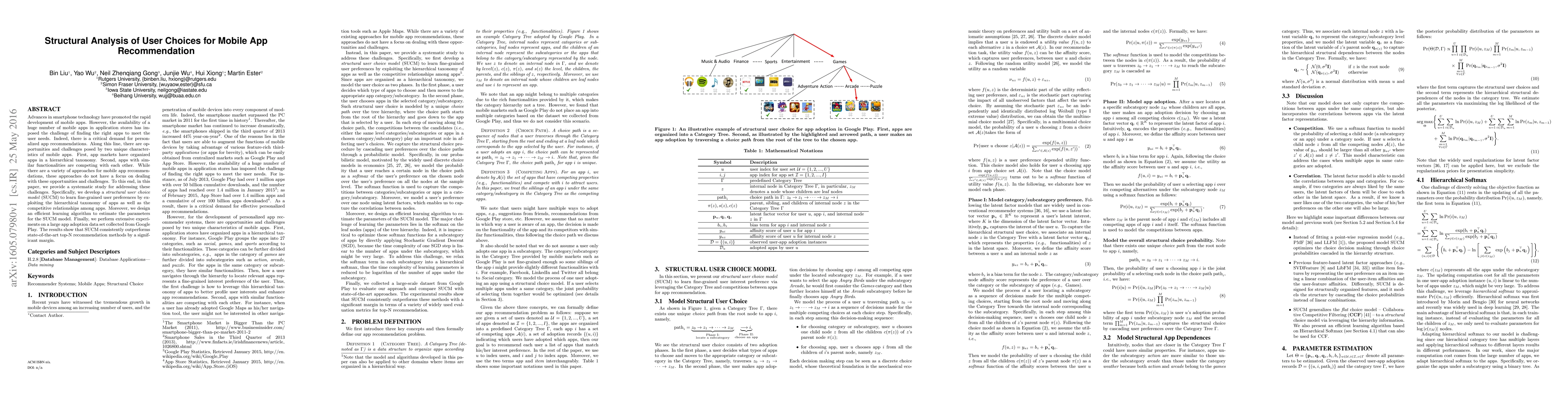 This paper develops a Structural User Choice Model (SUCM) to address challenges in mobile app recommendation by leveraging app hierarchies and competitive relationships. The proposed model outperforms existing methods in extensive experiments on a large Google Play dataset.