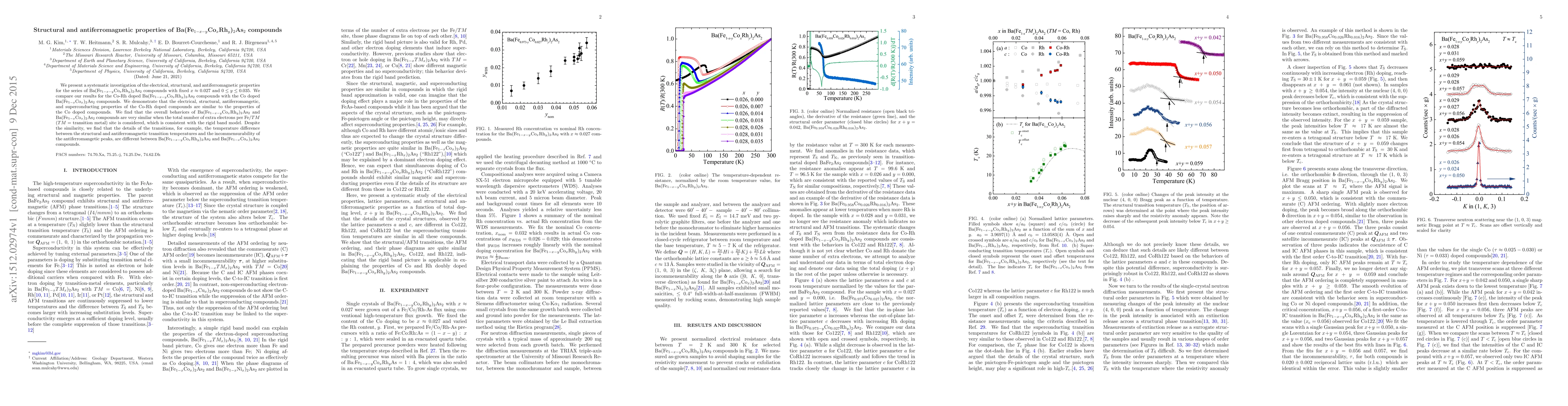 We present a systematic investigation of the electrical, structural, and antiferromagnetic properties for the series of Ba(Fe$_{1-x-y}$Co$_{x}$Rh$_{y}$)$_{2}$As$_{2}$ compounds with fixed $x \approx$ 0.027 and $ 0 \leq y \leq 0.035$. We compare our results for the Co-Rh doped Ba(Fe$_{1-x-y}$Co$_{x}$Rh$_{y}$)$_{2}$As$_{2}$ compounds with the Co doped Ba(Fe$_{1-x}$Co$_{x}$)$_{2}$As$_{2}$ compounds. We demonstrate that the electrical, structural, antiferromangetic, and superconducting properties of the Co-Rh doped compounds are similar to the properties of the Co doped compounds. We find that the overall behaviors of Ba(Fe$_{1-x-y}$Co$_{x}$Rh$_{y}$)$_{2}$As$_{2}$ and Ba(Fe$_{1-x}$Co$_{x}$)$_{2}$As$_{2}$ compounds are very similar when the total number of extra electrons per Fe/$TM$ ($TM$ = transition metal) site is considered, which is consistent with the rigid band model. Despite the similarity, we find that the details of the transitions, for example, the temperature difference between the structural and antiferromagnetic transition temperatures and the incommensurability of the antiferromangetic peaks, are different between Ba(Fe$_{1-x-y}$Co$_{x}$Rh$_{y}$)$_{2}$As$_{2}$ and Ba(Fe$_{1-x}$Co$_{x}$)$_{2}$As$_{2}$ compounds.