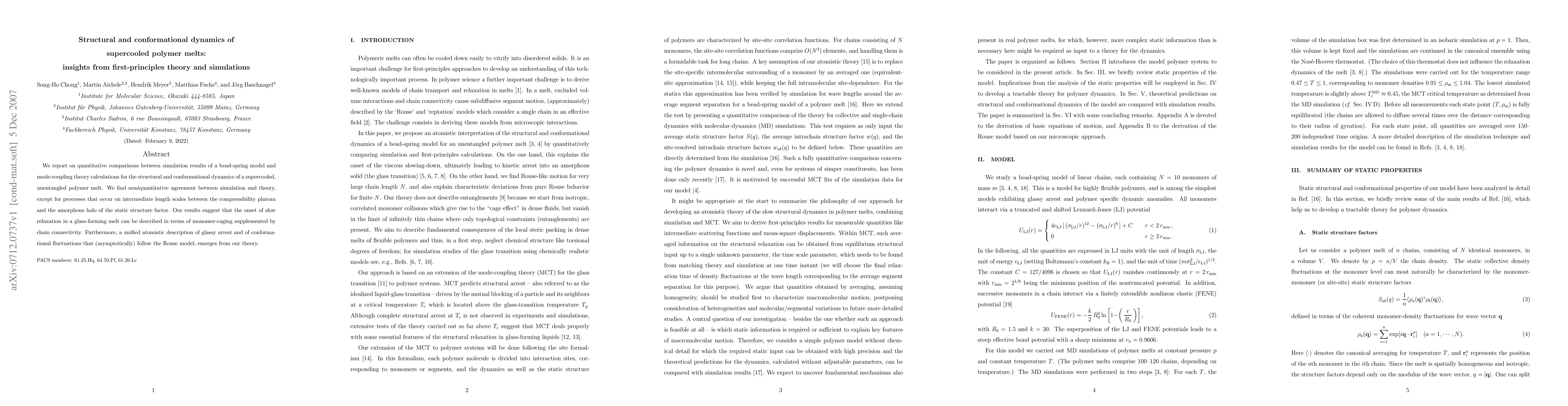 This paper compares simulation results and theoretical predictions for the dynamics of supercooled polymer melts, finding semiquantitative agreement with the exception of intermediate length scale processes. The study suggests that slow relaxation onset in glass-forming melts is due to monomer-caging and chain connectivity, and proposes a unified atomistic description of glassy arrest and conformational fluctuations.