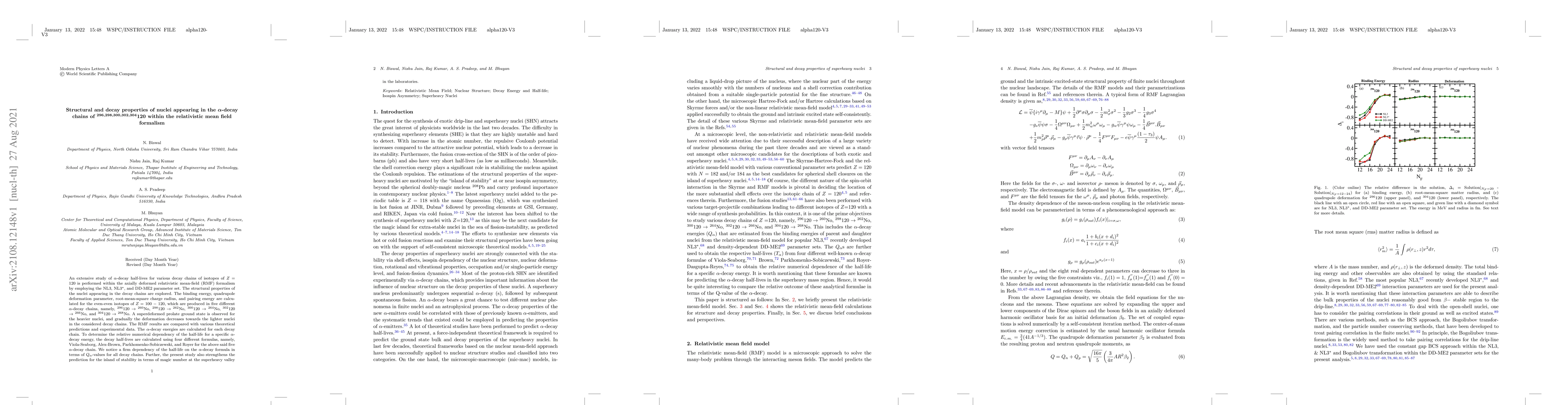 Researchers studied alpha-decay chains of superheavy nuclei using relativistic mean-field formalism to explore structural properties and half-lives, finding a dependency on alpha-decay formulas and supporting the prediction of an island of stability.