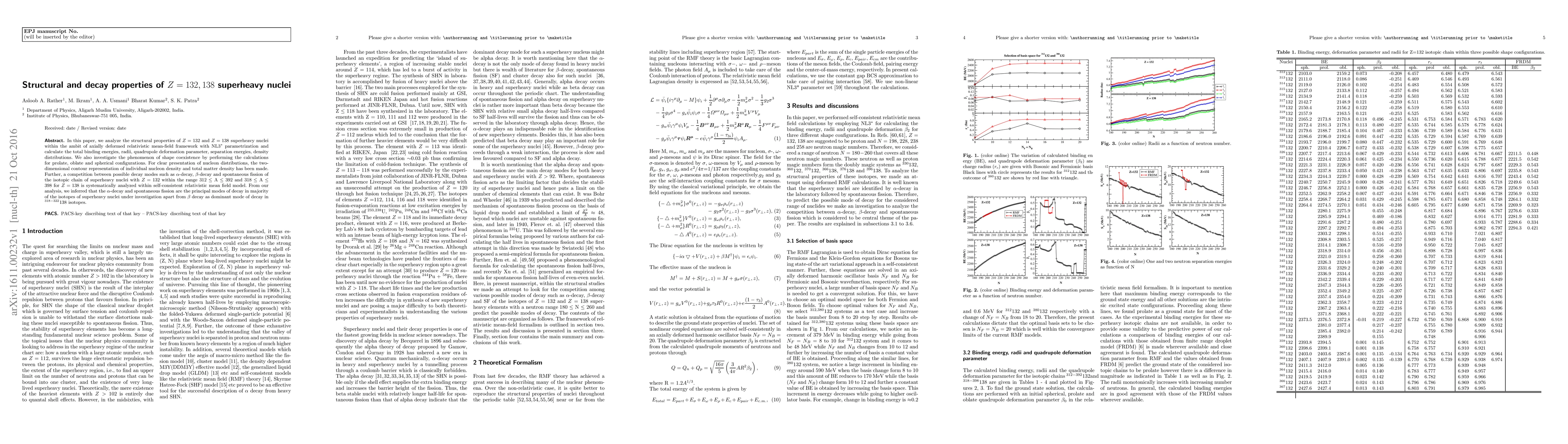 This paper examines the structural and decay properties of superheavy nuclei with atomic numbers $Z=132$ and $Z=138$ using relativistic mean-field theory, revealing shape coexistence and identifying $\alpha$-decay and spontaneous fission as primary decay modes, except for $\beta$-decay in certain isotopes.