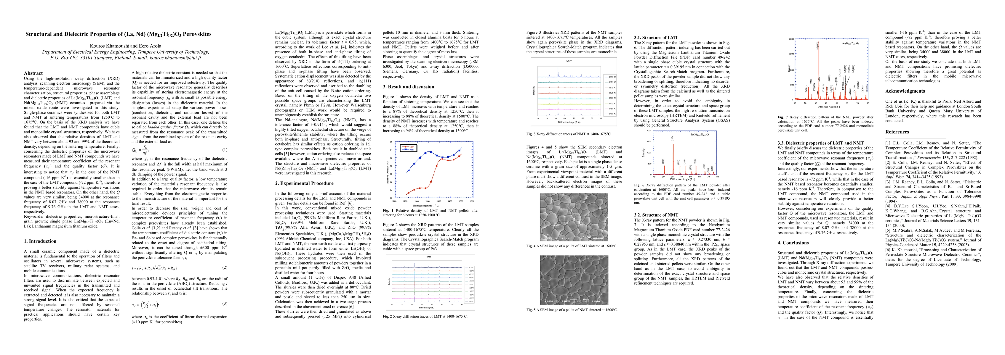 Researchers investigated La(Mg1/2Ti1/2)O3 and Nd(Mg1/2Ti1/2)O3 ceramics for their structural and dielectric properties, finding that the Nd compound has a better temperature stability in microwave resonators.