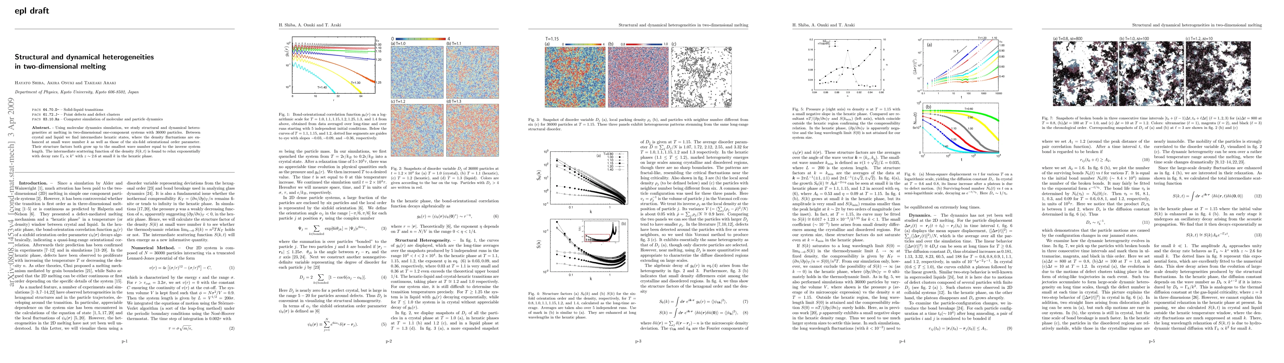 This research uses molecular dynamics to explore structural and dynamical heterogeneities during melting in two-dimensional systems, revealing intermediate hexatic states with enhanced density and orientational order fluctuations. The relaxation of density fluctuations in the hexatic phase follows an exponential decay rate proportional to k^2.6.