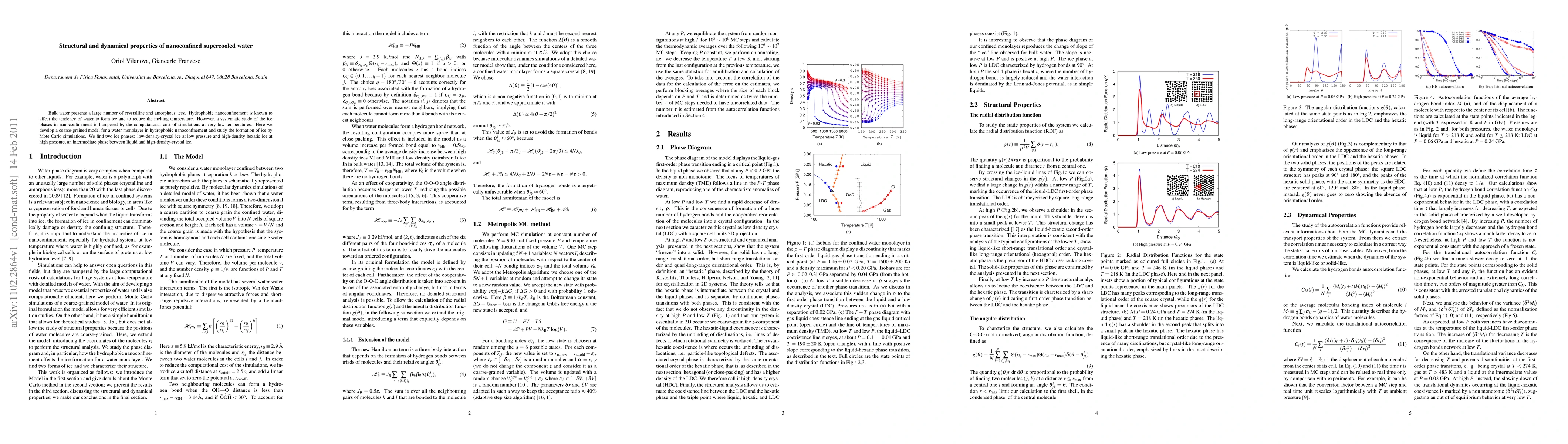 This paper develops a coarse-grained model to study supercooled water in hydrophobic nanoconfinement, revealing two ice phases: low-density-crystal ice at low pressure and high-density hexatic ice at high pressure, with an intermediate phase between liquid and high-density-crystal ice. The findings highlight the impact of nanoconfinement on water's ice formation and melting temperature.