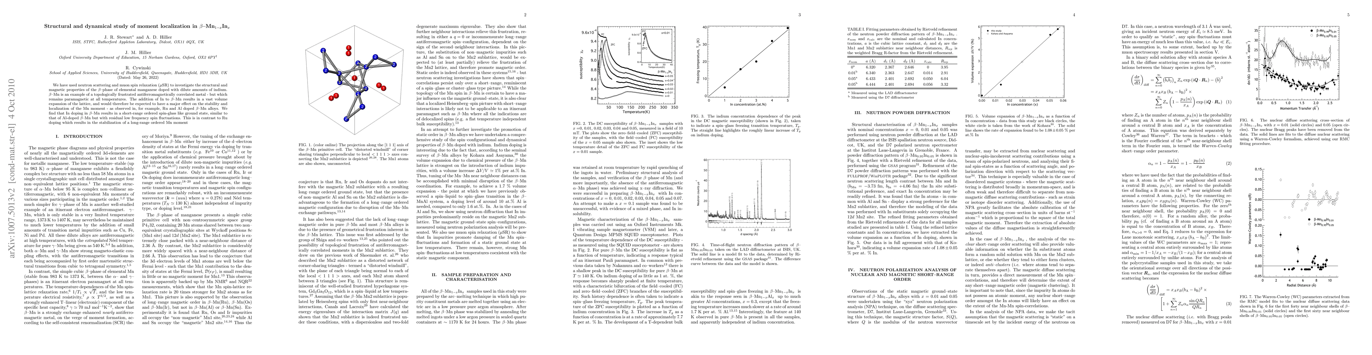 We have used neutron scattering and muon spin relaxation (muSR) to investigate the structural and magnetic properties of the beta-phase of elemental manganese doped with dilute amounts of indium. beta-Mn is an example of a topologically frustrated antiferromagnetically correlated metal - but which remains paramagnetic at all temperatures. The addition of In to beta-Mn results in a vast volume expansion of the lattice, and would therefore be expected to have a major effect on the stability and localization of the Mn moment - as observed in, for example, Ru and Al doped beta-Mn alloys. We find that In doping in beta-Mn results in a short-range ordered spin-glass like ground state, similar to that of Al-doped beta-Mn but with residual low frequency spin fluctuations. This is in contrast to Ru doping which results in the stabilization of a long-range ordered Mn moment