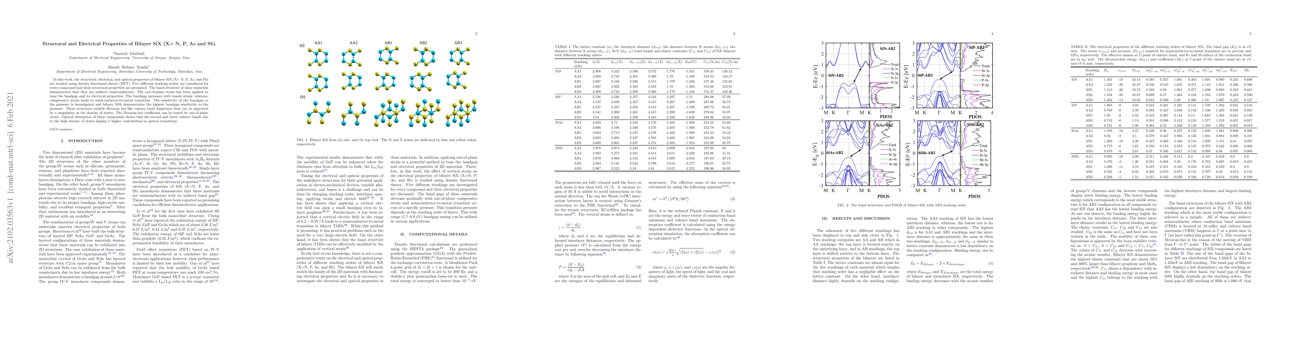 Researchers studied the structural, electrical, and optical properties of bilayer SiX compounds (N, P, As, and Sb) using density functional theory, finding that they exhibit indirect semiconducting behavior with tunable bandgaps.