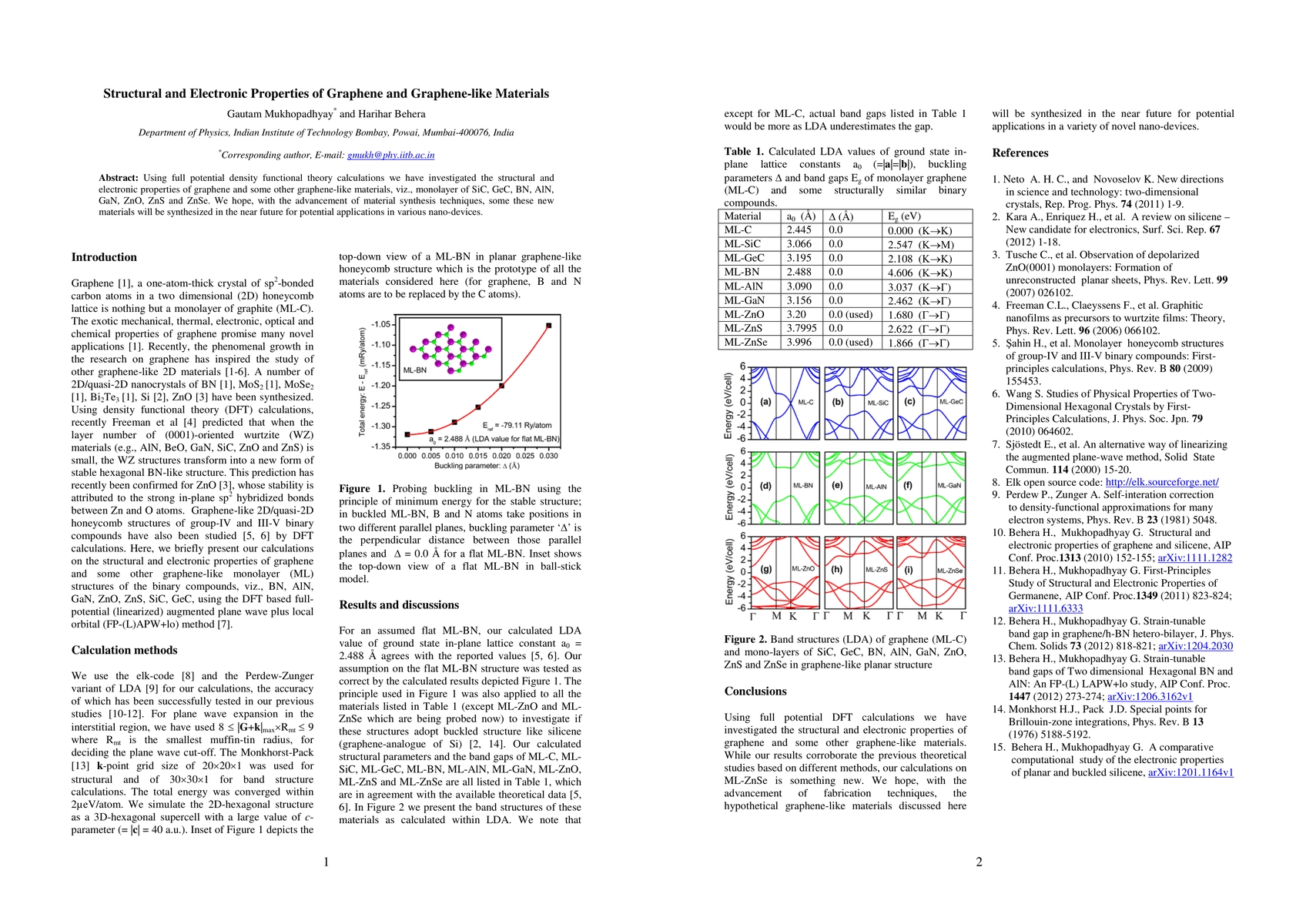 This study employs density functional theory to examine the structural and electronic properties of graphene and related materials like SiC, GeC, BN, AlN, GaN, ZnO, ZnS, and ZnSe, aiming to identify potential nano-device applications as synthesis techniques advance.