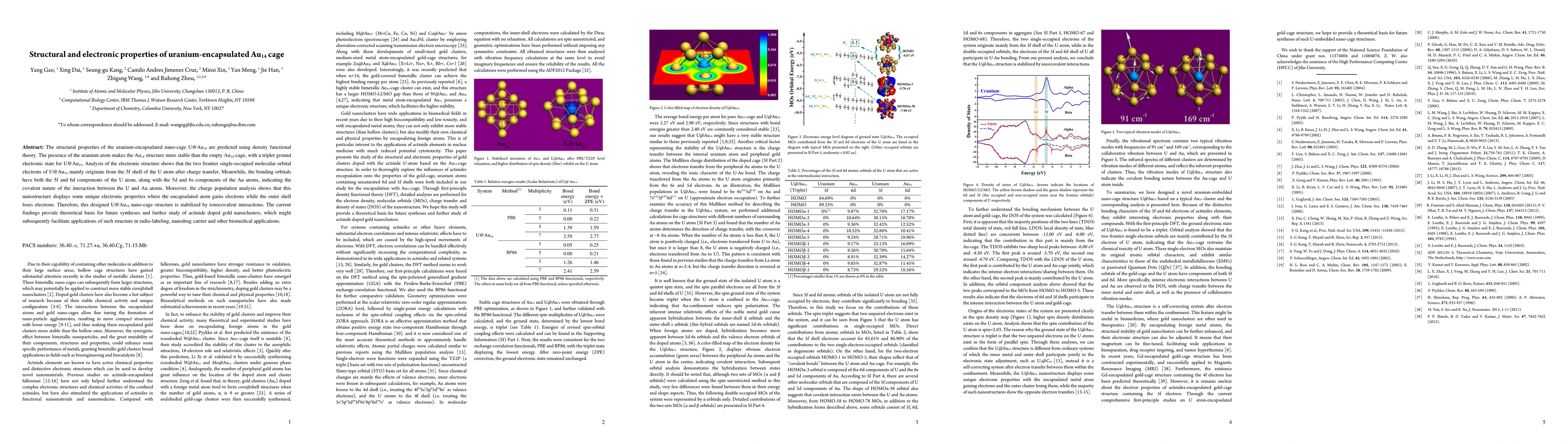 Researchers used density functional theory to predict the structural and electronic properties of a uranium-encapsulated gold nano-cage, finding it more stable than the empty cage due to covalent interactions between U and Au atoms.