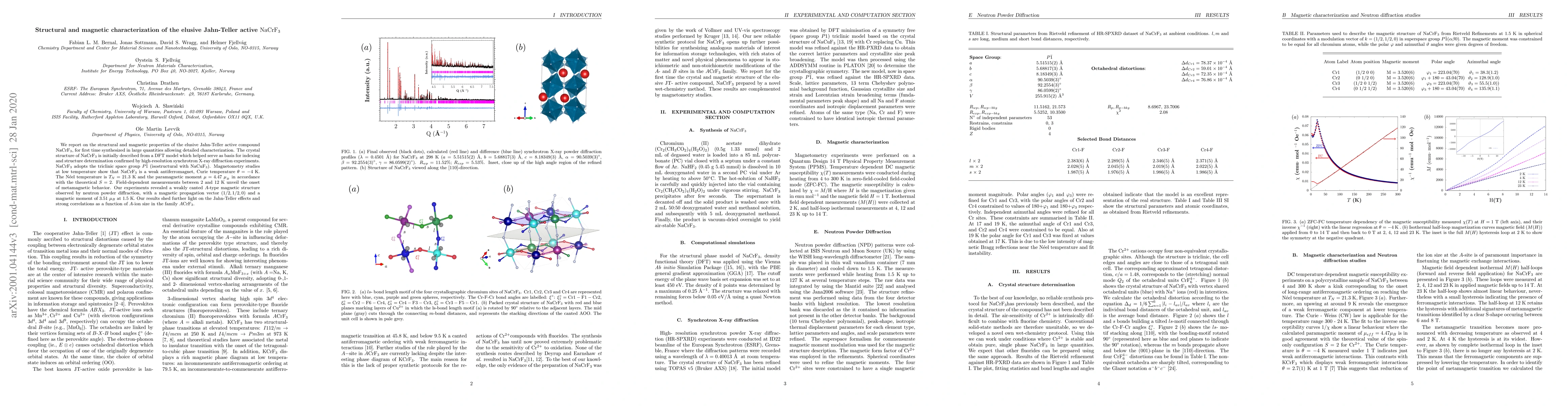 This paper investigates the structural and magnetic properties of the rare Jahn-Teller active compound NaCrF3, providing insights into its unique characteristics and behavior. The findings contribute to the understanding of similar materials with potential applications in magnetic and electronic technologies.