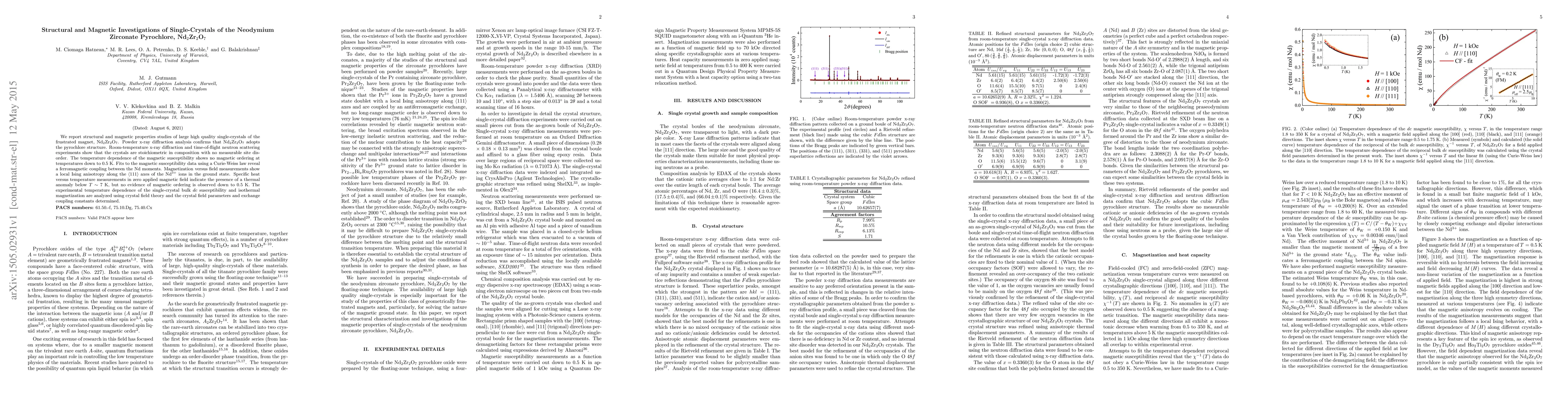 The study examines single-crystals of Nd2Zr2O7, confirming its pyrochlore structure with no site disorder. Despite lack of magnetic ordering down to 0.5K, ferromagnetic coupling and local Ising anisotropy are identified. A thermal anomaly is noted below 7K, but no magnetic ordering is observed. Crystal field theory is used to analyze susceptibility and magnetization data, determining crystal field parameters and exchange coupling constants.
